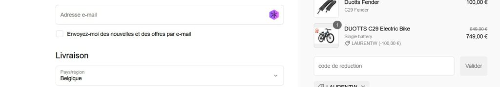 Ce lien vous redirigera vers la page d'accueil mais ajoutera automatiquement le code promo dans votre panier pour n'importe quel vélo. Cela vous évitera de devoir le taper vous-même.