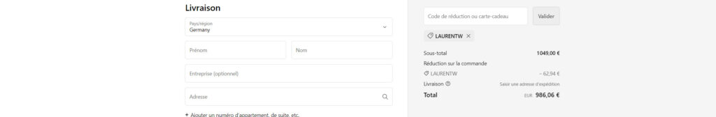 En cliquant sur ce lien, vous allez être redirigé vers la page d'accueil, le code promo s'ajoutera automatiquement à votre commande au niveau du panier.