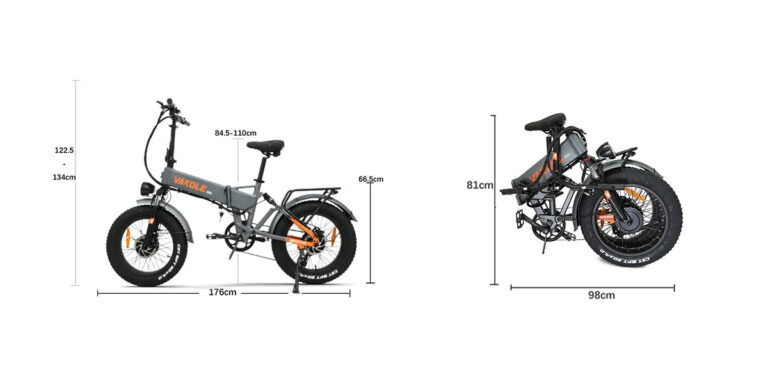 Le Vakole C020 est assez grand une fois déplié, il mesure près de 180cm en longueur. Une fois replié, il mesure 81 cm sur 98cm. Ce vélo convient aussi bien aux personnes de petites que de grandes tailles jusque 190cm. Il supporte jusqu'à 150kg de poids.