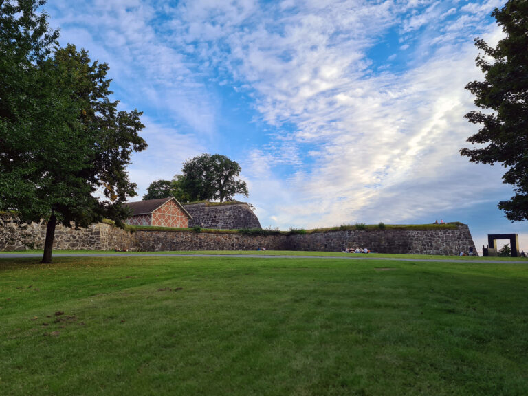 Oslo est une ville assez pauvre en monuments historiques, ce n'est d'ailleurs pas l'horrible cathédrale d'Oslo qui remontera le niveau, elle fait penser à une grosse église importée d'une bourgade allemande où l'on vénère la saucisse et la bière. Les amateurs de vieilles pierres trouveront par contre leur bonheur avec la citadelle d'Arkershus (Akershus festning) qui se trouve en bord de mer à 5 minutes à pied de la Karl Johans Gate. La citadelle appartient toujours à l'armée mais elle est ouverte au public jusqu'à 21h en été. La citadelle est un ensemble qui comprend un château, des fortifications, des baraques, un étang, des canons et un chemin de promenade dans son parc. Des concerts et pièces de théâtre y sont également organisés. Je pense que vous ne trouverez pas ce genre de bâtiment ailleurs en Norvège.