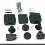 J'ai acheté une caméra indivuelle pour l'intérieur (la caméra blanche) et un pack composé de deux caméras externes (les caméras noires) avec leur module de controle. Chaque boite contient en plus des caméras un set de piles AAA ainsi qu'un petit support mural pour attacher la camera.