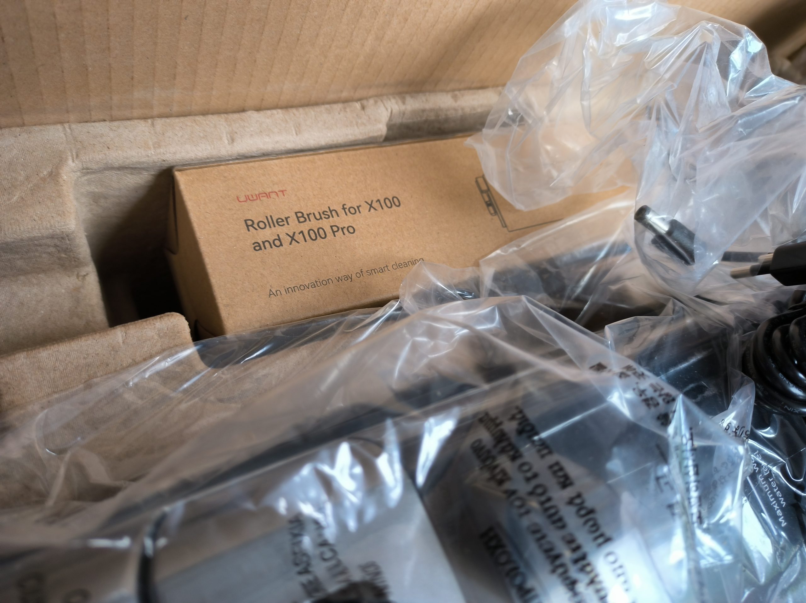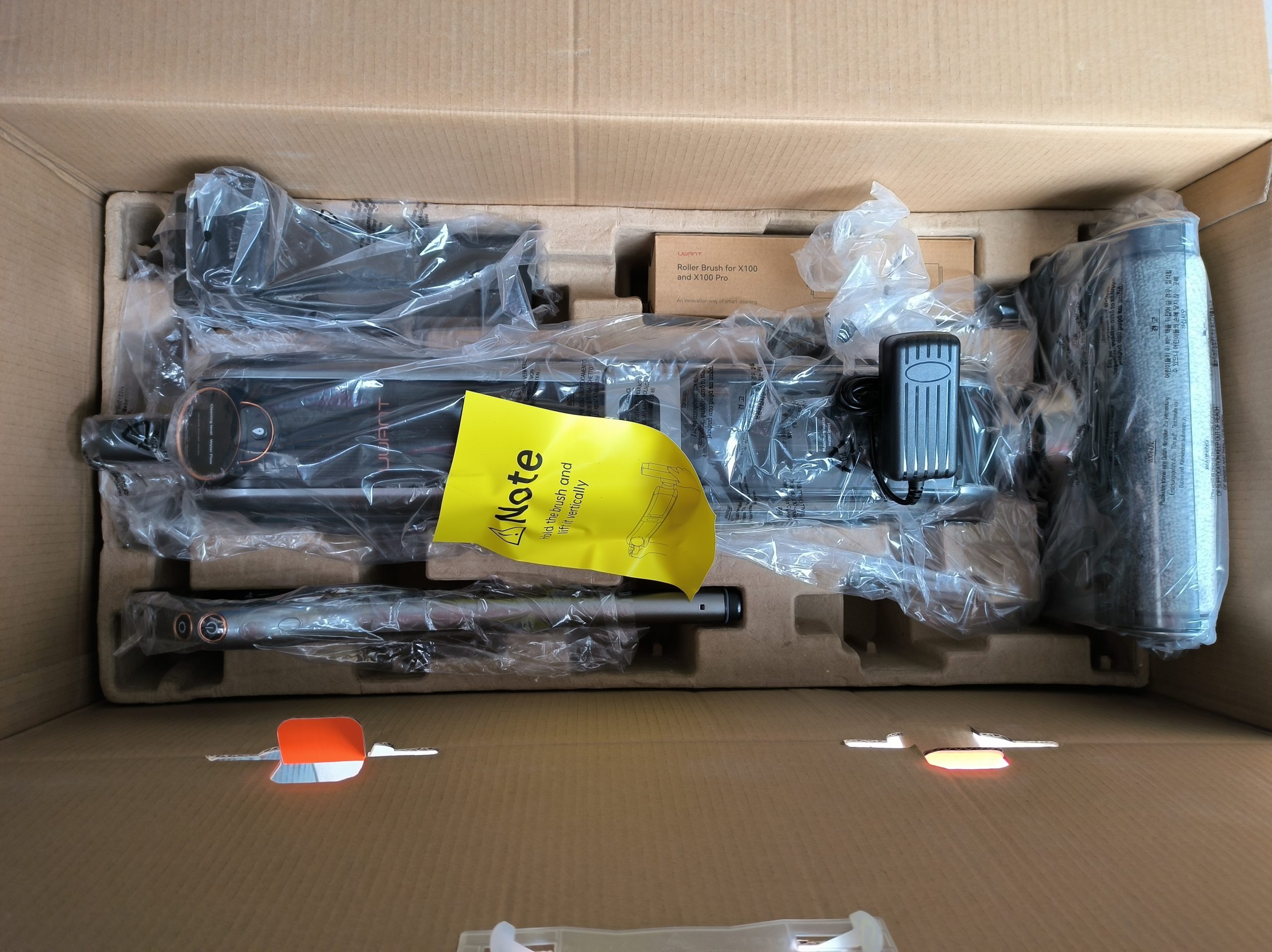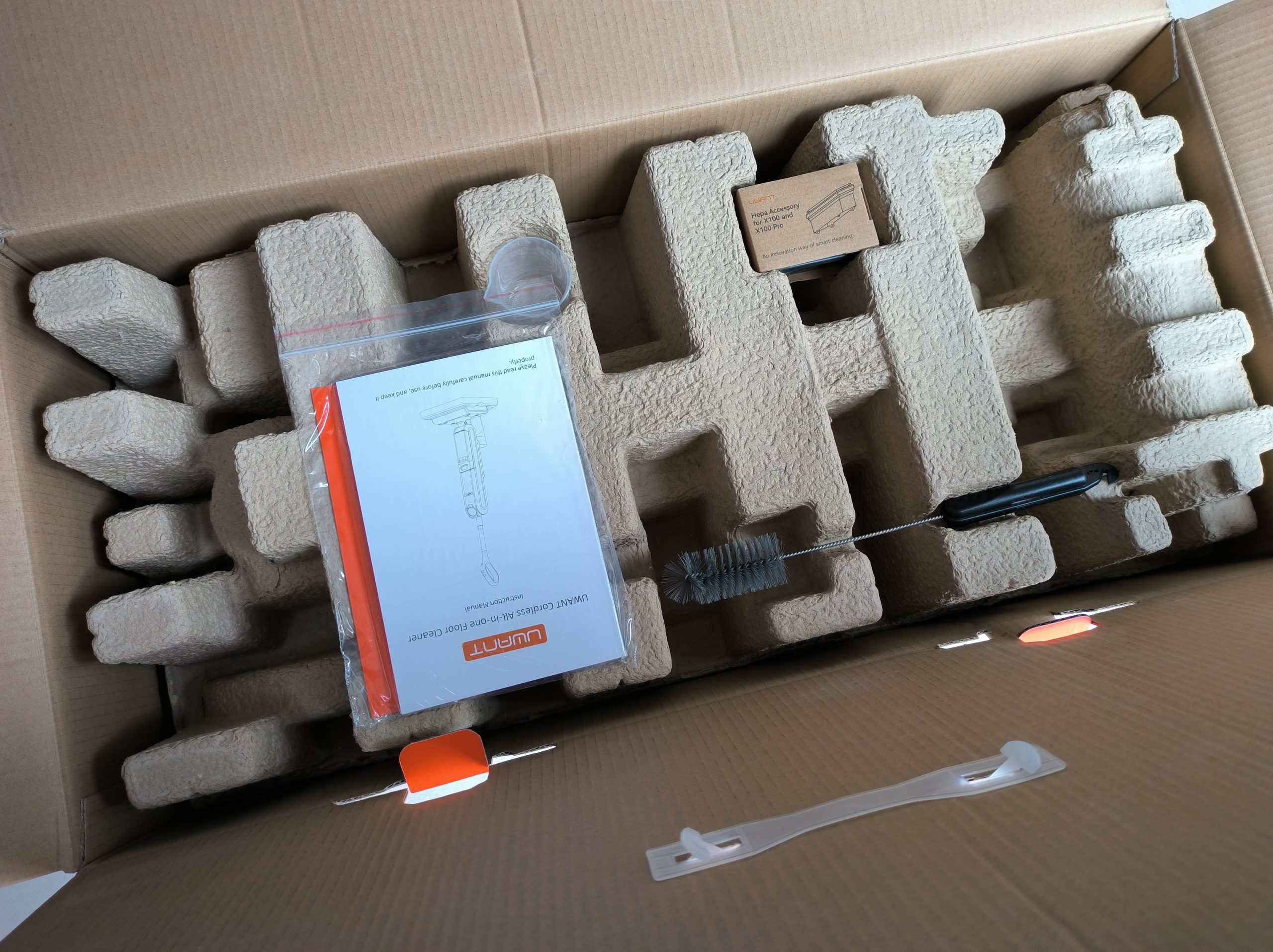 Comme les autres aspirateurs de ce type que j'ai testés, la boite du UWANT X100 est assez imposante mais la différence avec les autres c'est que tous les accessoires à l'intérieur sont rangés de façon simple. Je veux dire par là que dans la boite des autres (Dreame, Jimmy,...), il faut bien réfléchir à comment replacer les accessoires dans leur emplacement d'origine, ici ce n'est pas le cas et c'est très pratique pour le rangement.