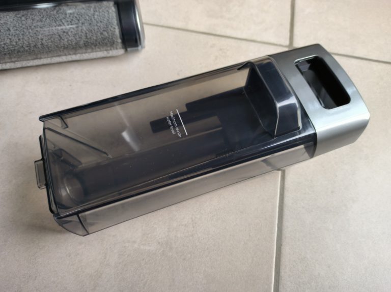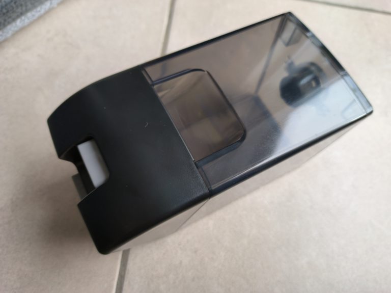 Le réservoir d'eau propre a également une capacité de 0.6l et devrait vous permettre de nettoyer une surface de plus de 200m². Pour remplir ce réservoir il suffit de le détacher, soulever une membrane et le remplir sous un robinet. Je vous conseille également de ne pas laisser l'eau trainer trop longtemps dans le réservoir surtout si votre eau contient beaucoup de calcaire.