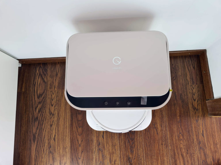 Le robot aspirateur/nettoyeur Yeedi Mop et sa station d'accueil est sans doute le meilleur robot que j'ai pu tester jusqu'à présent. Même si il se distingue des autres par sa capacité à nettoyer le sol, le module d'aspiration n'a pas été négligé car avec une force d'aspiration de 2500pa, il va capturer la majorité des saletés du quotidien. Le Yeedi Mop est livré avec une station d'accueil qui contient un réservoir d'eau propre de 3.5 litres, le robot revient à sa base pour reprendre de l'eau propre et nettoyer ses brosses avant de repartir. Le Yeedi Mop est un produit vraiment autonome mais je conseille de ne pas attendre que le réservoir d'eau sale soit plein pour le vider car l'eau sale qui stagne finit par sentir mauvais.
