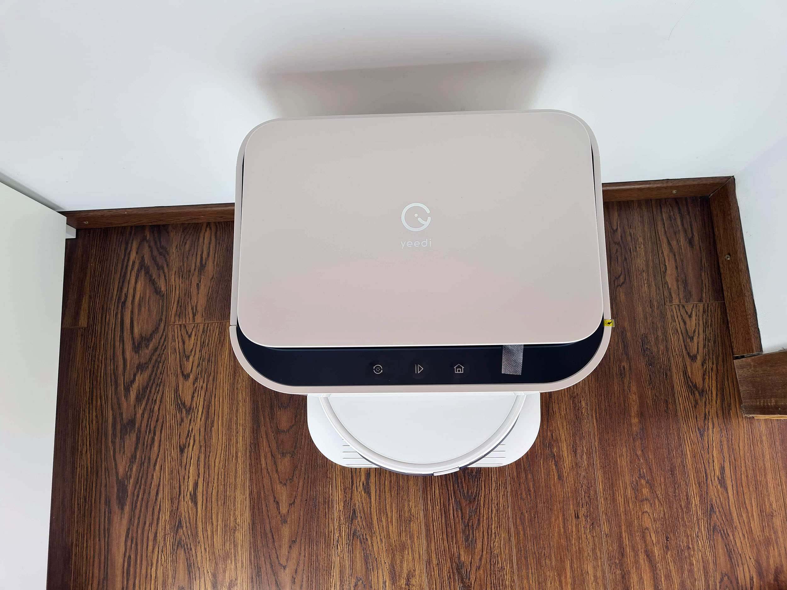 J'ai testé plusieurs robots nettoyeurs cette année et jusqu'à présent ces robots étaient équipés d'une serpillère qui humidifiait le sol et frottait légèrement sa surface. Le nettoyage n'était donc pas très efficace. Le Yeedi Mop est un vrai nettoyeur, il dispose de deux brosses rotatives qui en plus de tourner elles appliquent une pression de 10N sur le sol (équivalent à une pression de 1kg). Ce mécanisme ressemble un peu aux nettoyeurs industriels que l'on peut retrouver dans certaines usines. Ce type de nettoyage est beaucoup plus efficace que celui proposés par les robots avec serpillère. Le robot est équipé d'un réservoir de 200 ml mais lorsqu'il a besoin d'eau, il retourne à sa base où vider l'eau sale et se remplir d'eau propre à partir du réservoir de 3.5 litres. Le remplacement de l'eau fait un peu de bruit (ça ressemble au bruit d'une machine à café).