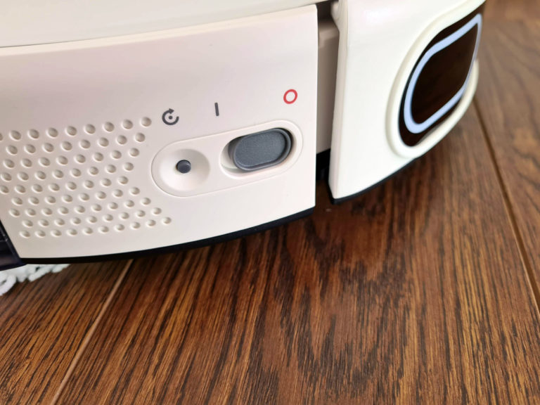 Le bouton d'allumage se trouve sur le coté d'aspirateur, on y retrouve aussi le bouton d'initialisation du wifi qui vous permettra d'associer le robot avec votre téléphone.