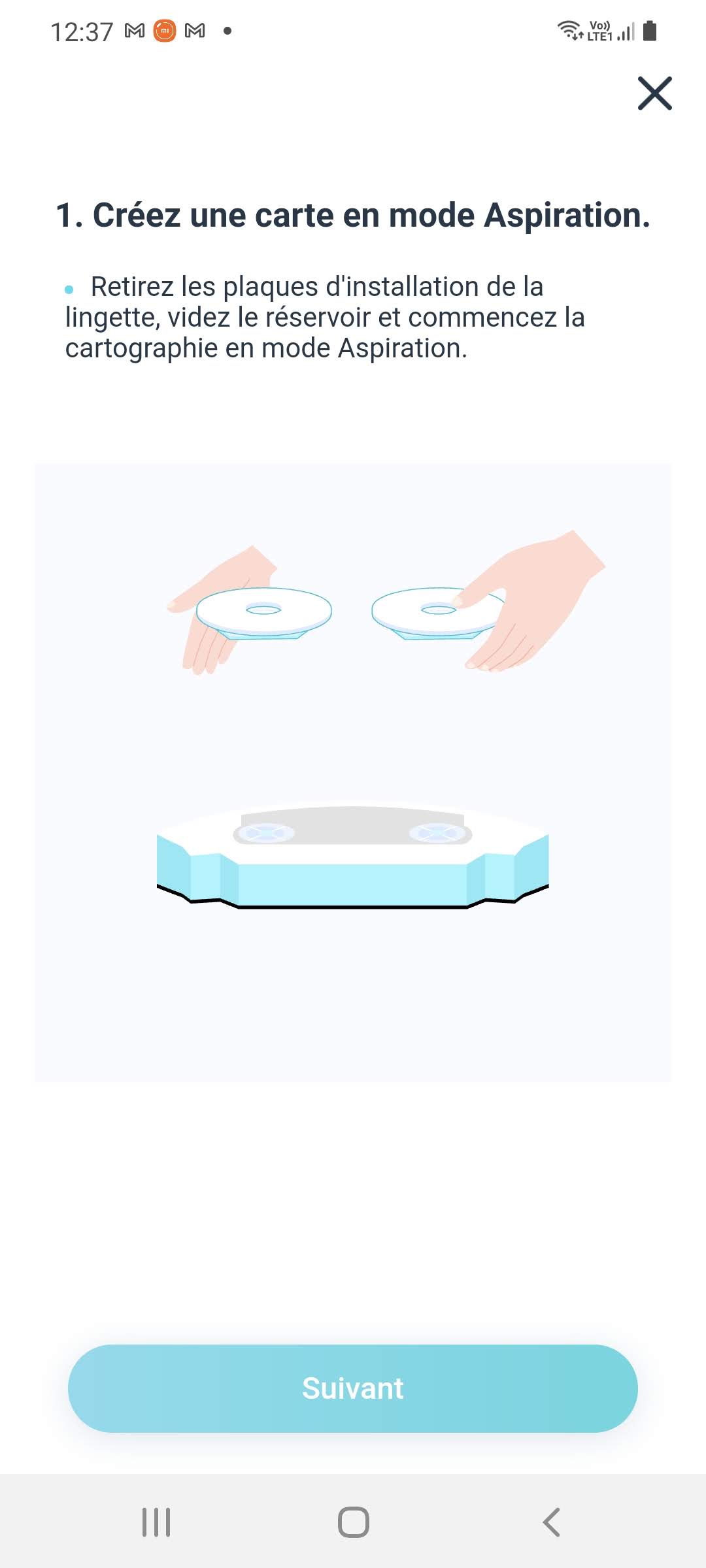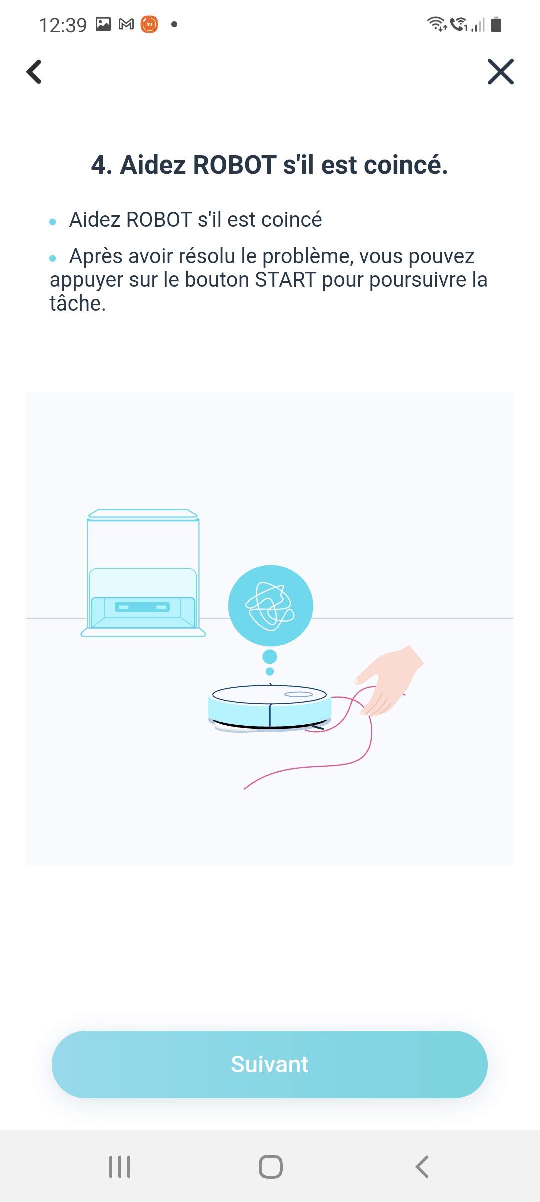 - après avoir suivi les instructions, si le Yeedi n'apparait pas dans la liste des appareils, fermez l'application, redémarrez votre téléphone et redemarrez l'application