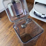 Le réservoir d'eau intègre aussi le réservoir pour la poussière et ce dernier est vraiment petit, ce robot est clairement plus destiné au nettoyage qu'à l'aspiration, il vaut donc bien faire passer le robot en mode aspiration avant d'envisager le nettoyage. Le réservoir pour la poussière est très facile à détacher, il est équipé de plusieurs filtres HEPA pour mieux filtrer la poussière.