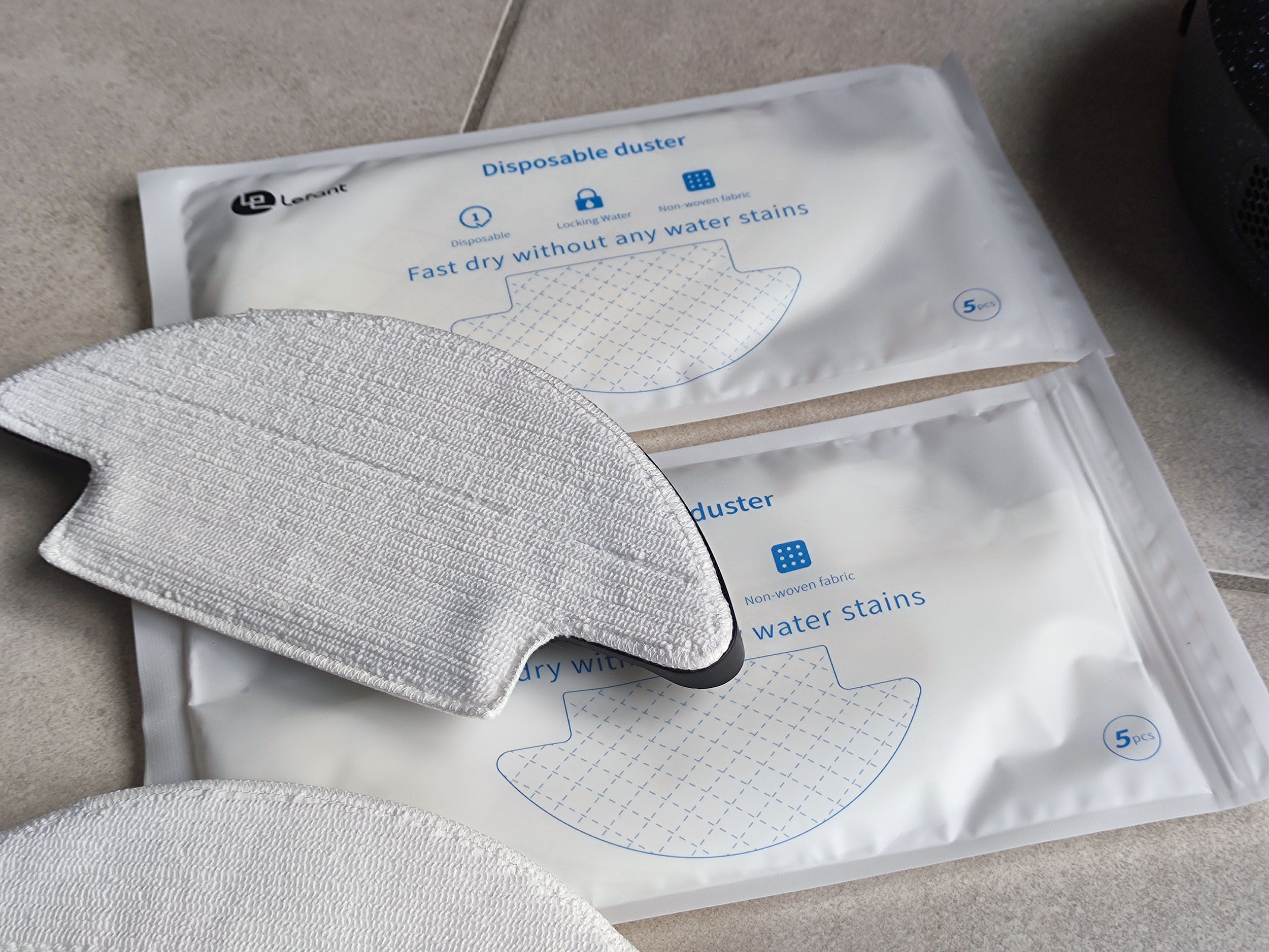 Il est également possible d'attacher un support pour serpillère mais comme le robot ne dispose pas de réservoir d'eau, il faut mouiller la serpillère avant de démarrer l'aspirateur. L'utilisation d'une serpillère à l'arrière ne va pas remplacer un nettoyage traditionnel, cette serpillère va se contenter de happer les saletés superficielles, elle ne pourra pas faire disparaitre des taches. Etant donné que le robot ne dispose pas de reservoir d'eau, la serpillère aura le temps de sécher avant la fin de la sessions d'aspiration, elle sera donc surtout utile dans les premières minutes. Lefant présente la serpillère comme un outil pour désinfecter vos sols, je suppose qu'il faut imbiber la serpillère avec de l'eau de javel mais comme pour l'eau, le désinfectant va vite se dissiper avant la fin du nettoyage. Si vous voulez un robot nettoyeur, il faut plutôt s'orienter vers un robot comme le Yeedi Mop Station.