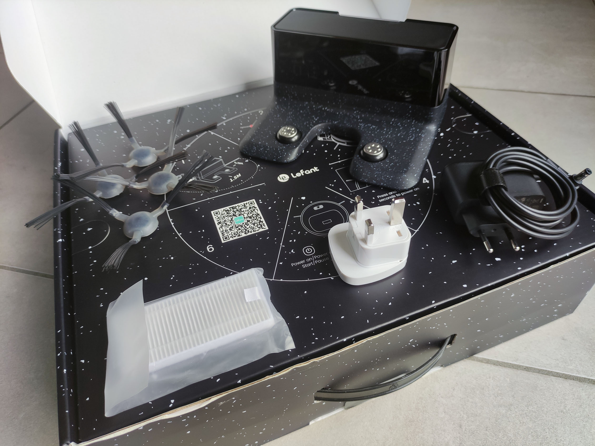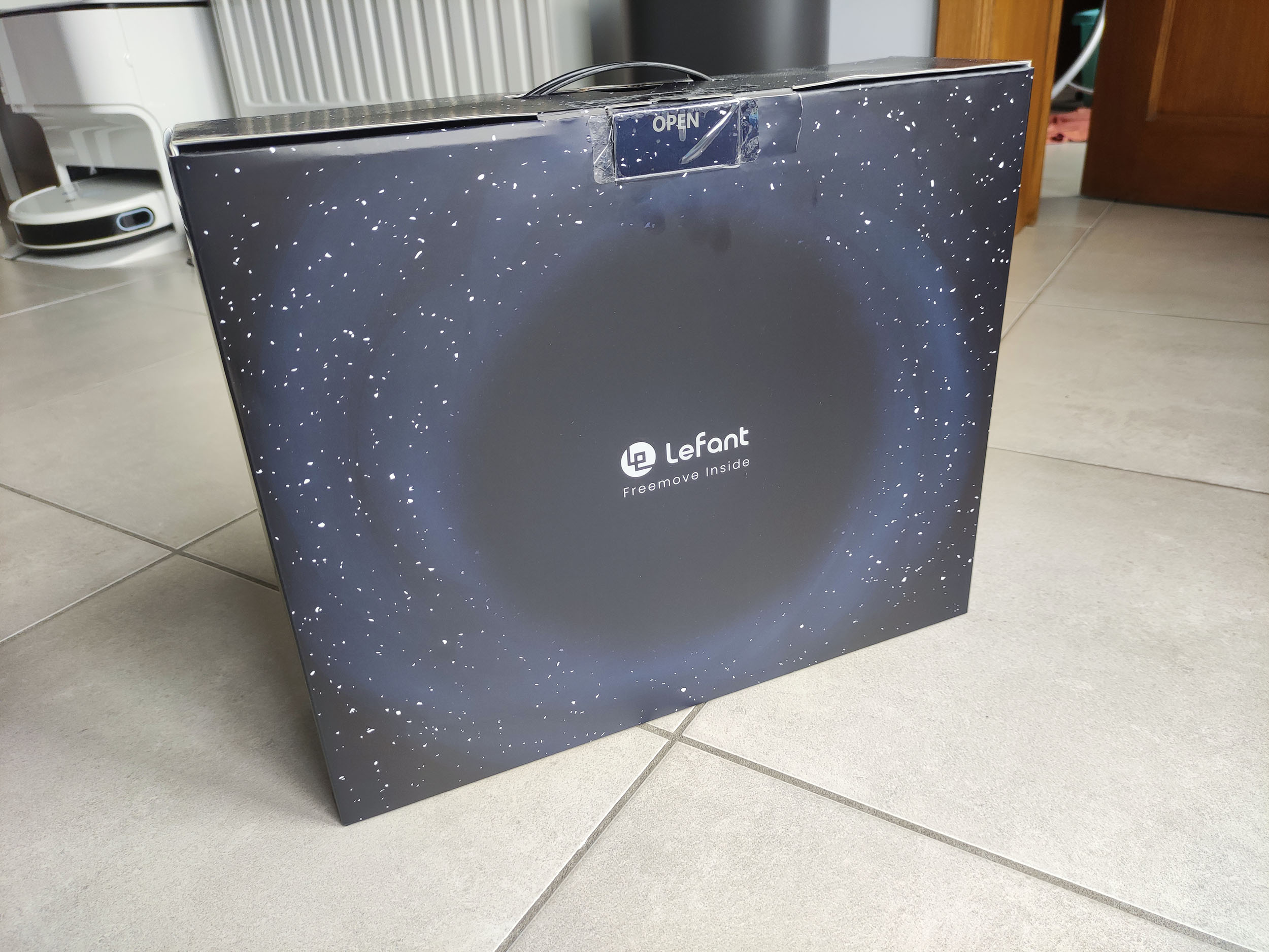 Le Lefant F1 a un design "cosmique" et cela se voit déjà sur la boite avec sa décoration étoilée. La boite est assez compacte mais est généreusement fournie en accessoires, elle contient les éléments suivants:
