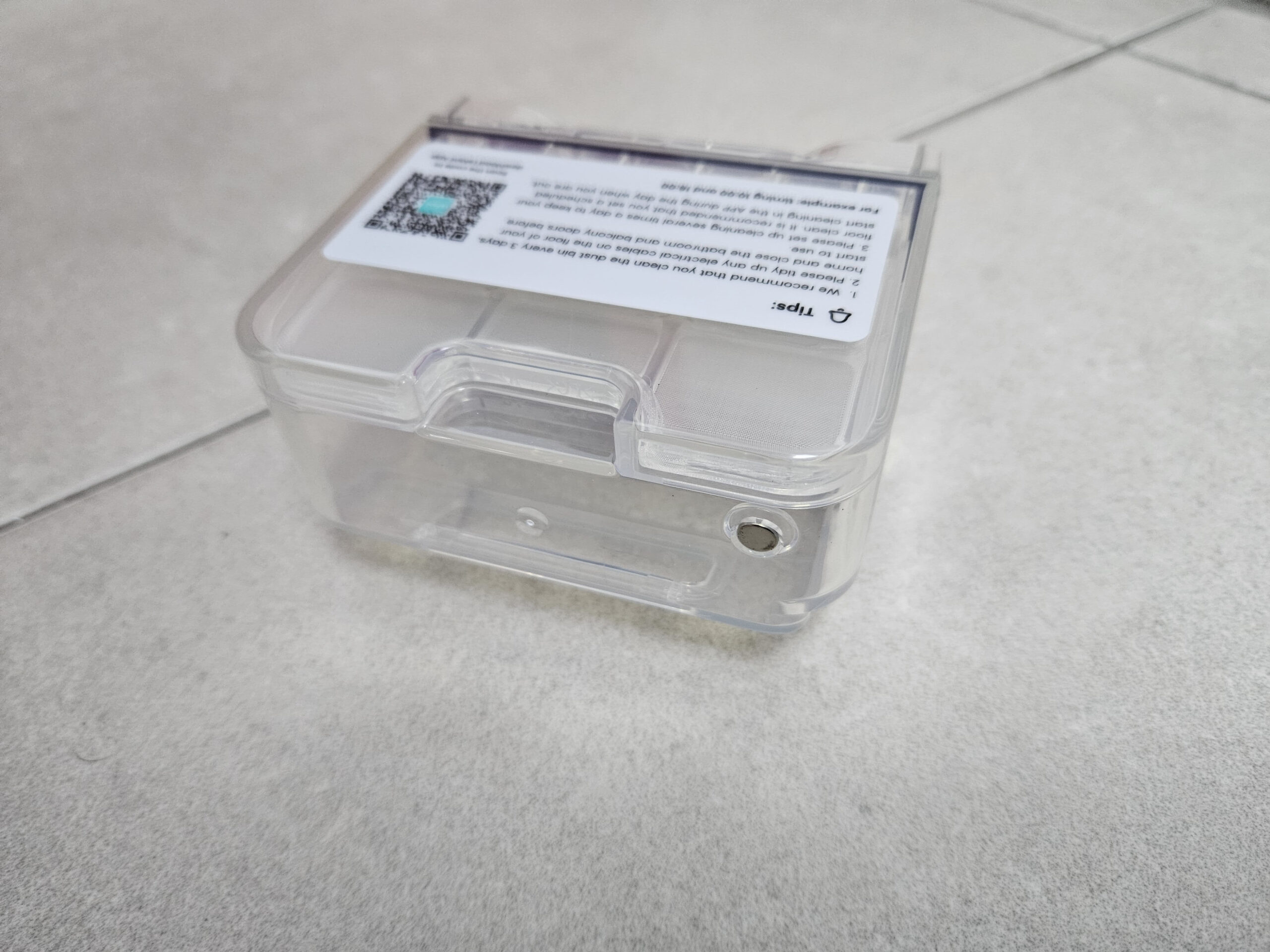 Le réservoir est tout petit, il faudra donc utiliser ce robot de façon régulière pour éviter que la saleté ne s’accumule. Le réservoir est équipé d’un filtre HEPA pour récupérer les particules de petite taille.