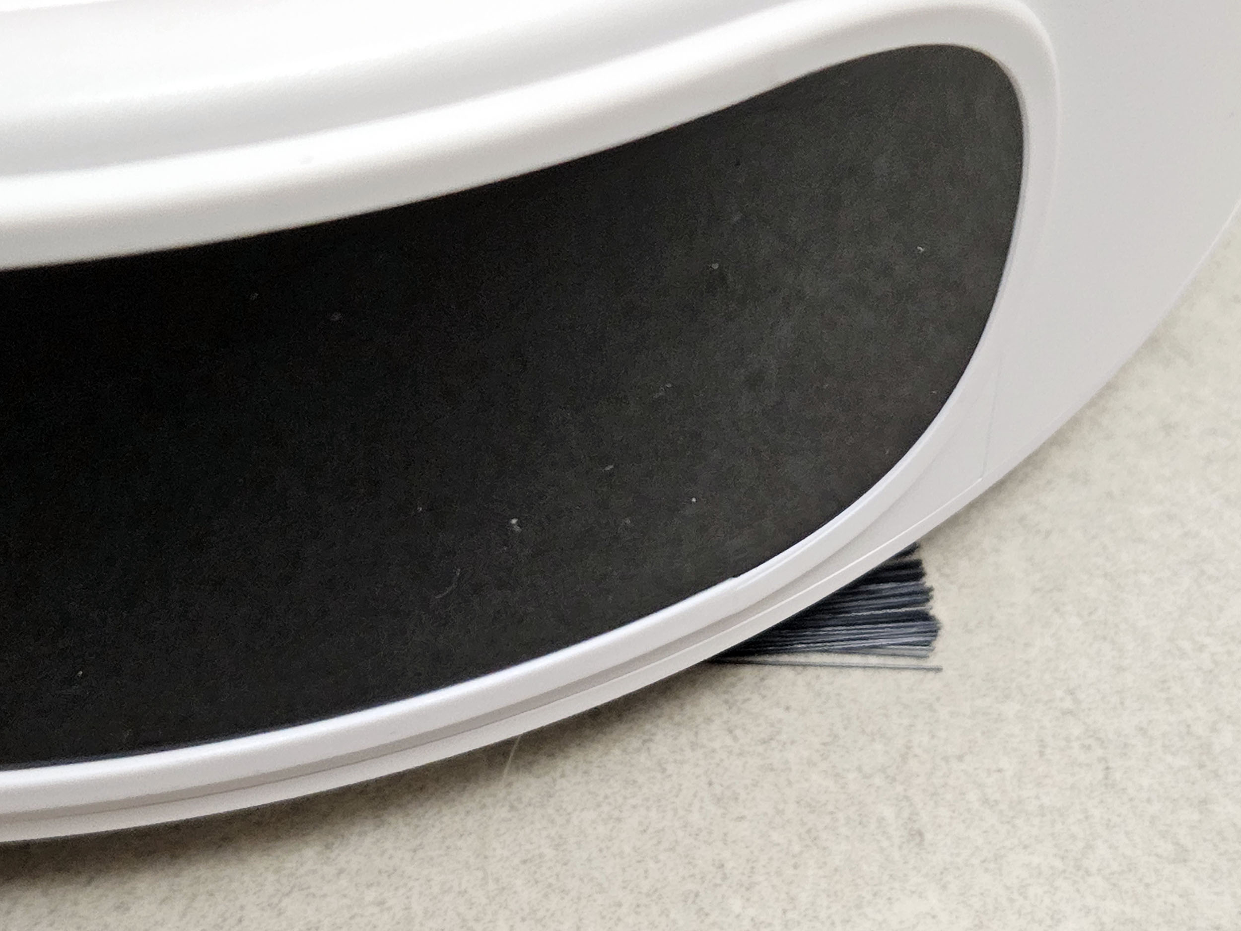L’ouverture en dessous de l’aspirateur est assez grande pour faire passer une brique Lego ou des céréales type choco pops. Les saletés de plus grande taille resteront coincées sous l’aspirateur et je ne suis même pas sûr qu’elles arrivent en dessous de l’aspirateur vu la faible hauteur du robot.