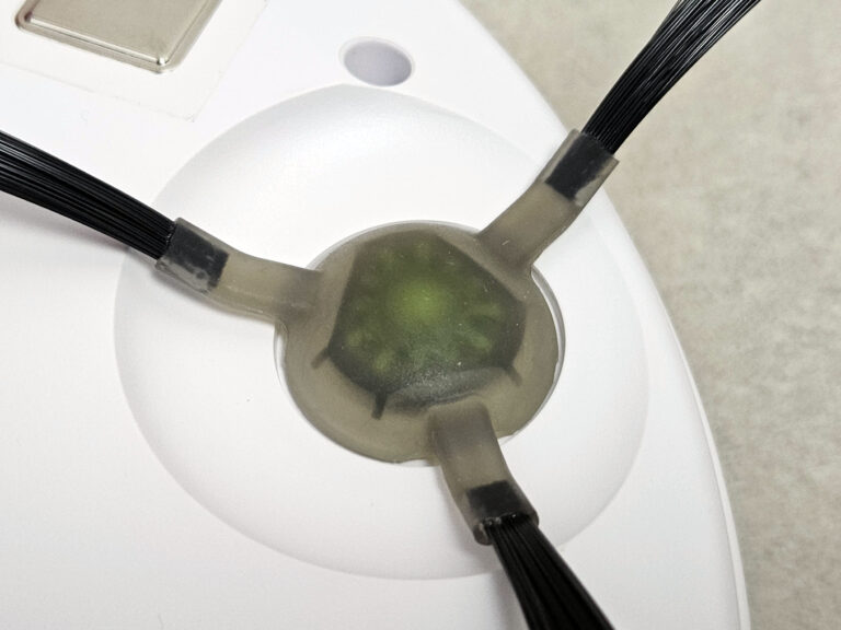 Le Lefant P1 est un robot à double brosse, ceci lui permet d’optimiser son trajet pour éviter de devoir repasser plusieurs fois au même endroit. Son repérage s’effectue par une caméra situé sur le haut de l’aspirateur et un capteur frontal, ce genre de repérage fonctionne en théorie moins bien dans l’obscurité mais ce robot est équipé d’un deux petits LEDs pour l’aider à retrouver son chemin dans le noir, c’est la première fois que je vois ça.