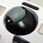 Il n’y a pas de brosse rotative à l’intérieur de l’aspirateur, ceci vous évitera de devoir sortir cette brosse pour la nettoyer mais l’absence de brosse permet également d’aspirer les saletés de plus grande taille. L’entrée est entourée de lamelles de caoutchouc pour guider les saletés en face du trou et éviter que des saletés n’échappent à l’aspiration.