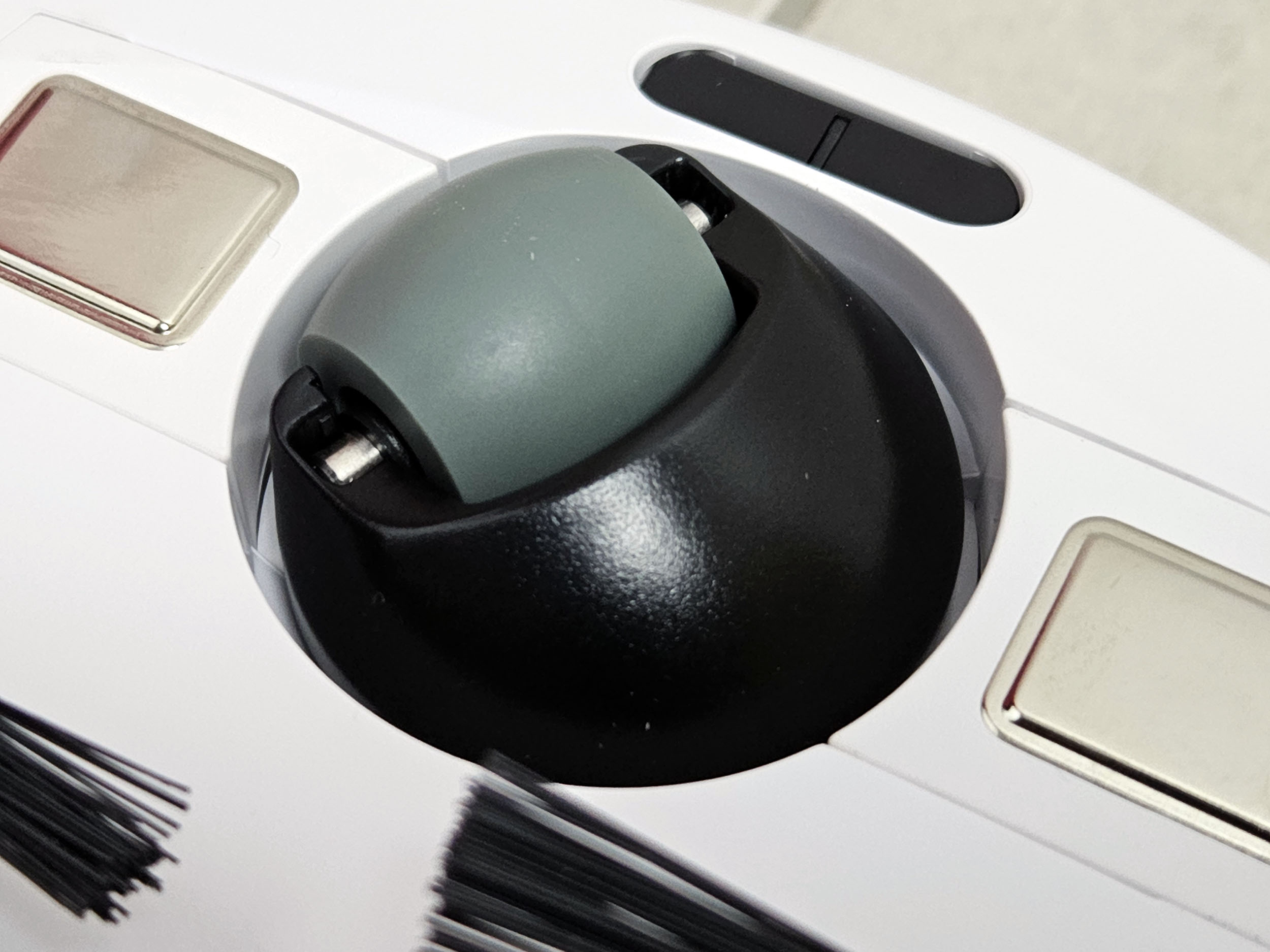 Les brosses sont protégées par un petit couvercle en caoutchouc qui va réduire le risque de voir des poils ou cheveux venir s’enrouler autour de celles-ci.