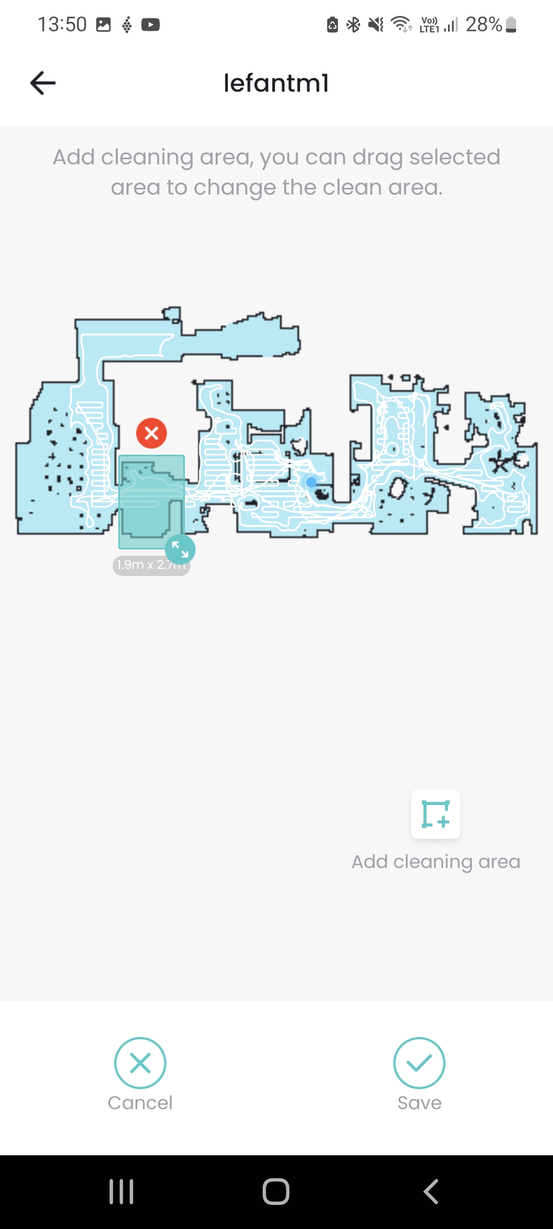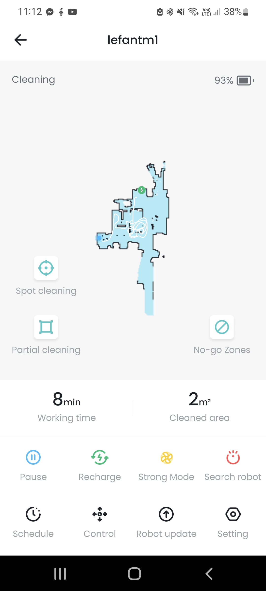 L'application Lefant a également bien évolué car il est maintenant possible de mémoriser une carte et gérer des zones (autorisation/interdiction) pour envoyer le robot à un endroit donné, il est également possible de piloter le robot manuellement pour l'amener à un endroit bien précis. Le robot utilise une technique hybride de nettoyage en commençant par les contours et en terminant de façon concentrique. Il dispose également d'une fonctionnalité permettant de nettoyer une zone en effectuant des cercles jusqu'à ce que la zone soit intégralement nettoyée. L'application est facile à utiliser mais est uniquement disponible en anglais.