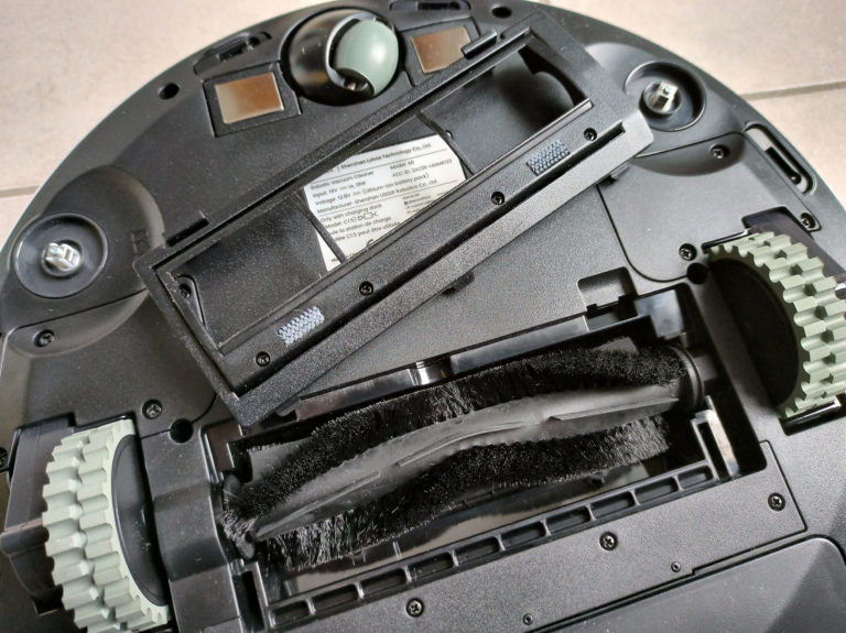 Comme tous les robots aspirateurs de ce type, vous pouvez ouvrir le compartiment contenant la brosse principale pour retirer les cheveux qui vont s'enrouler autour de la brosse. La brosse de ce Lefant M1 est très facile à détacher mais il faudra sans doute régulièrement la nettoyer pour éviter qu'elle ne se coince avec des cheveux. C'est la même chose pour la plupart des robots aspirateurs, ce n'est pas un défaut, il faut juste le savoir.