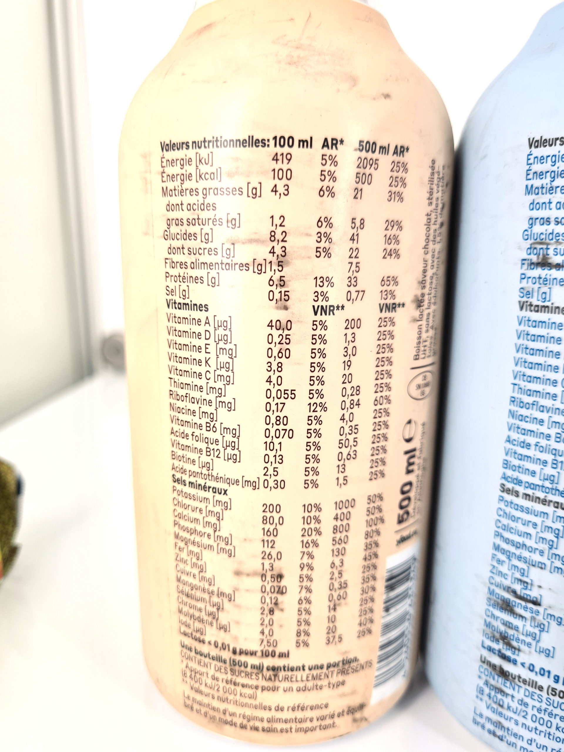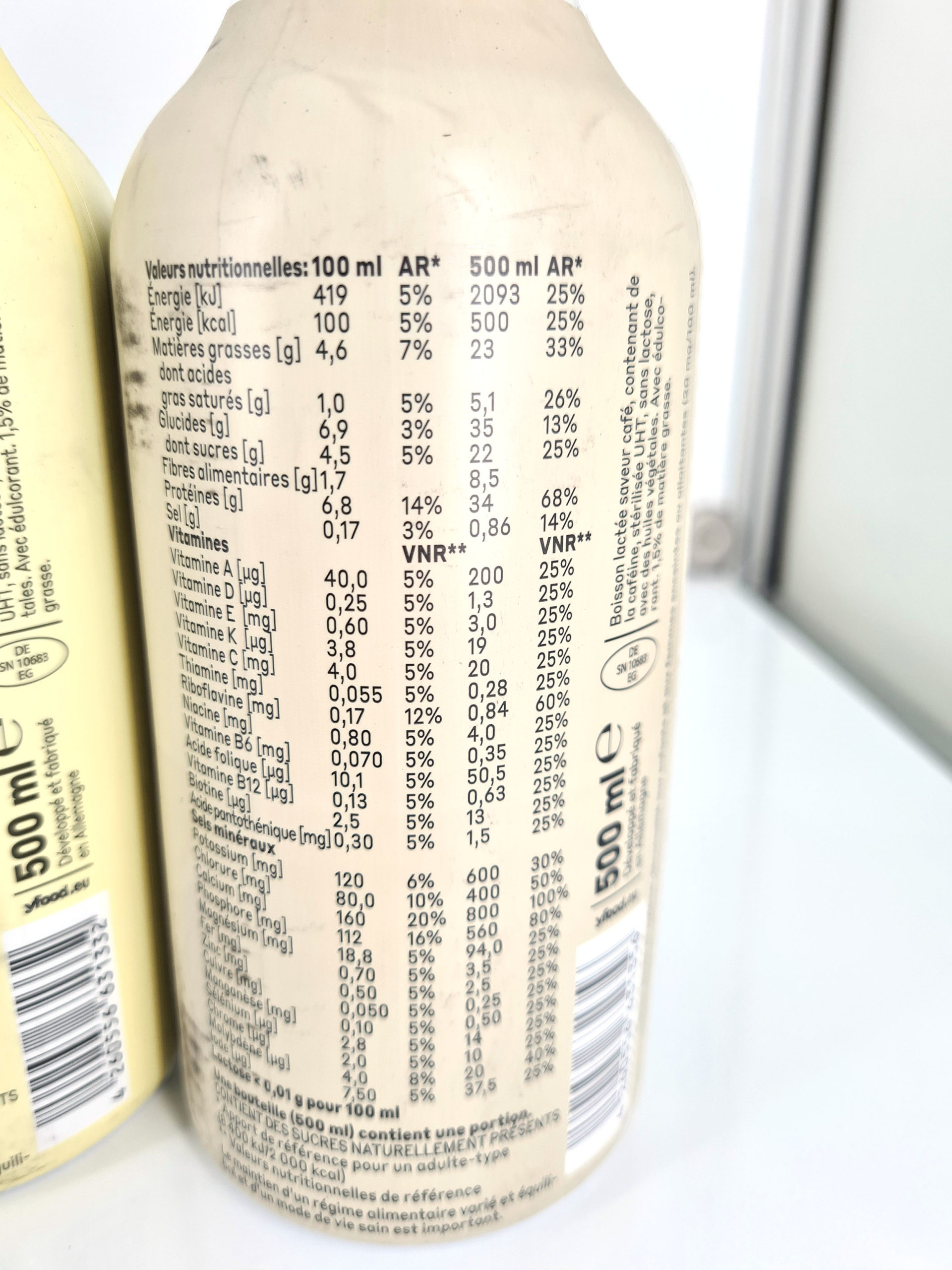 C'est au niveau des protéines que l'apport journalier est le plus important avec 68%. Avec les 500 calories ce n'est pas exactement une boisson diététique mais c'est sans doute moins qu'un repas complet dans une cantine d'entreprise.