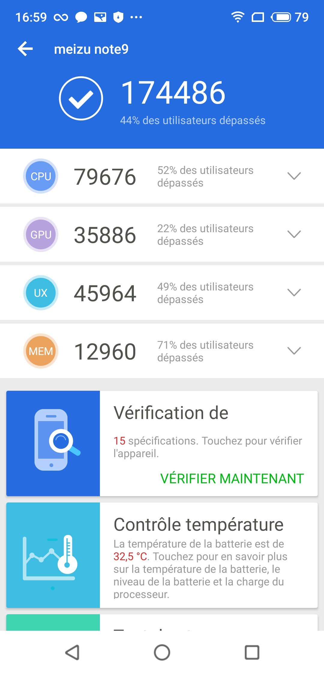 Comme vous pouvez le voir, le Meizu est capable de faire tourner le jeu en mode graphique avancé là où le Redmi Note 7 doit se contenter du niveau de graphisme moyen. Le jeu est parfaitement fluide et ne saccade absolument pas. Le Meizu Note 9 est vraiment le téléphone le plus puissant dans cette gamme de prix, il surclasse tous les autres téléphones que j'ai pus tester.