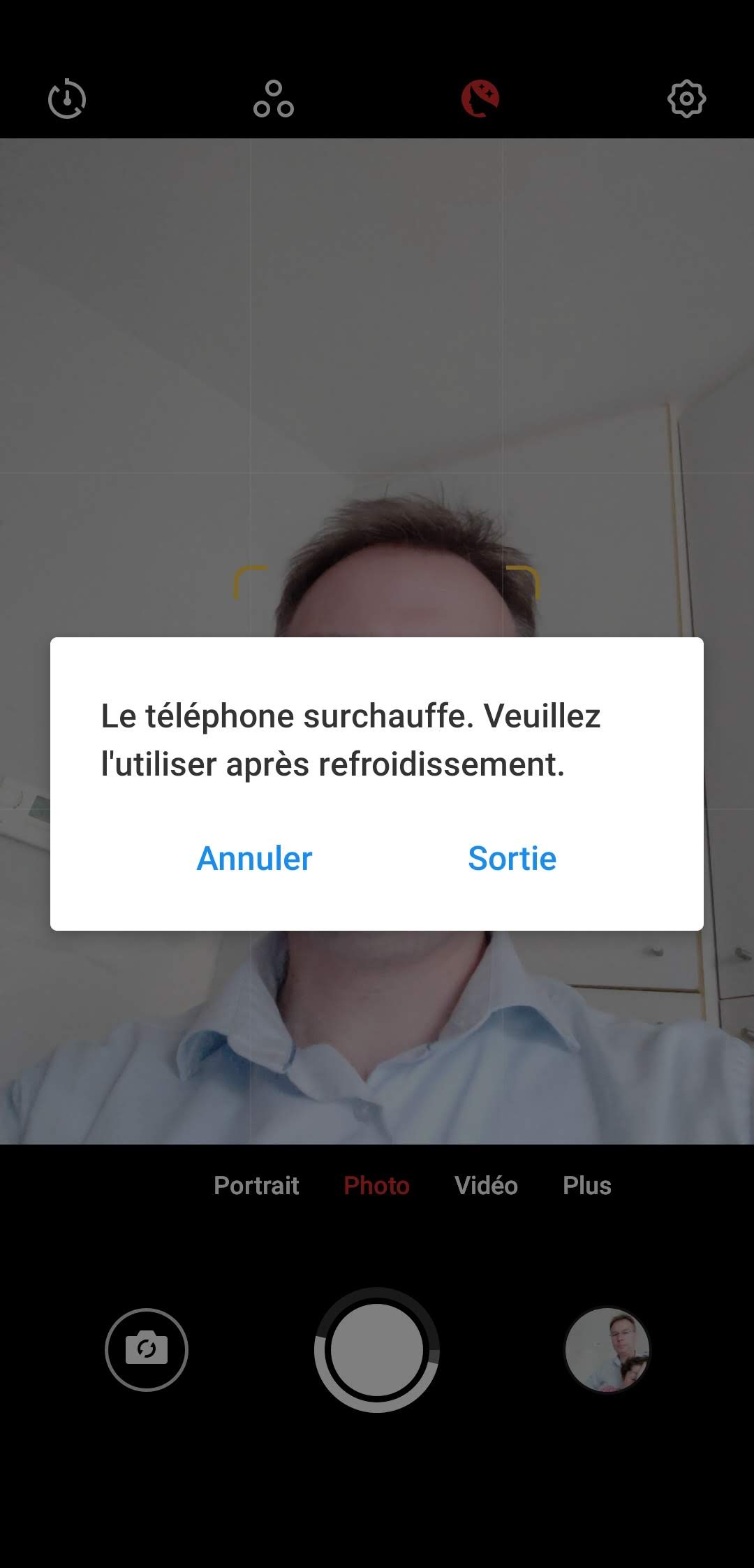 En jouant avec l'appareil photo, l'appareil s'est mis à chauffer assez fortement et il a affiché un message disant que l'appareil était en surchauffe.