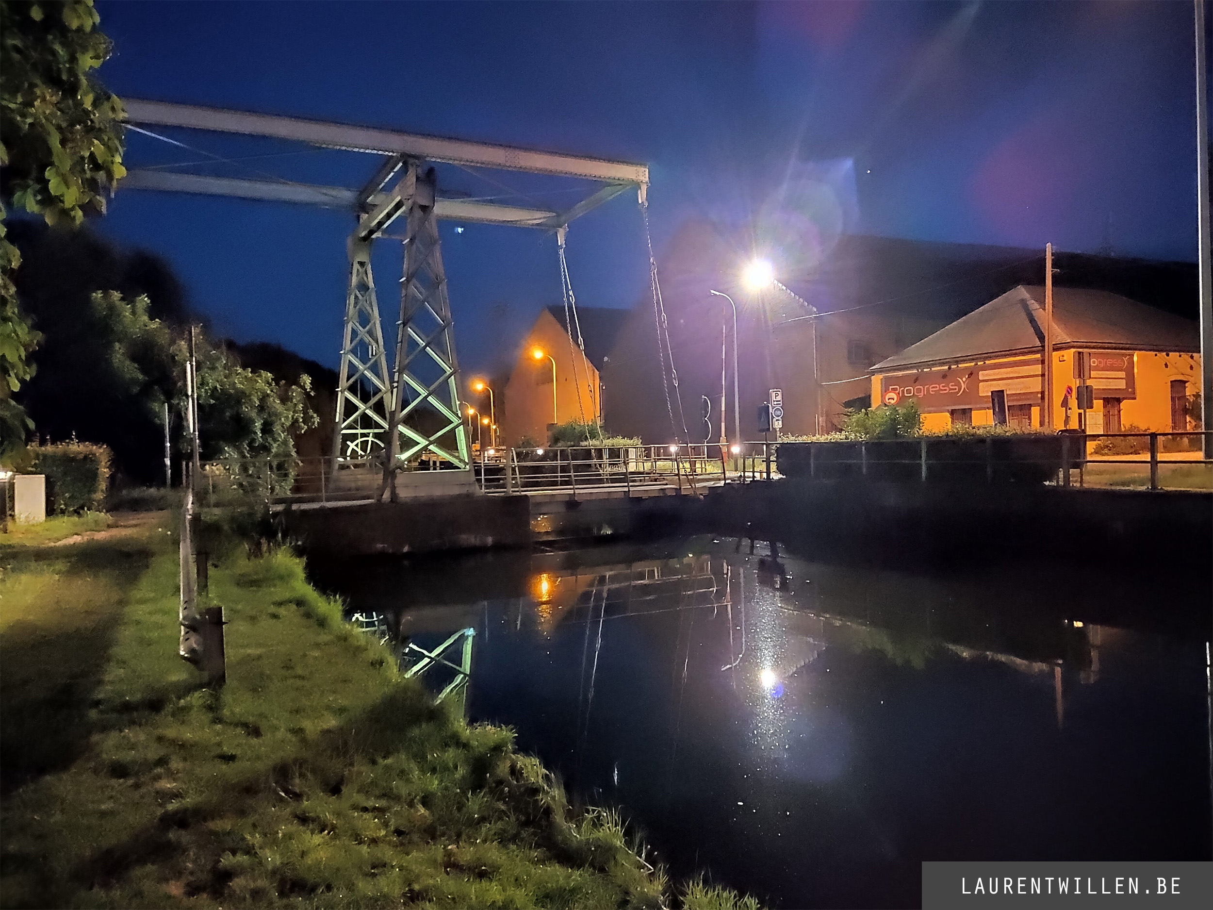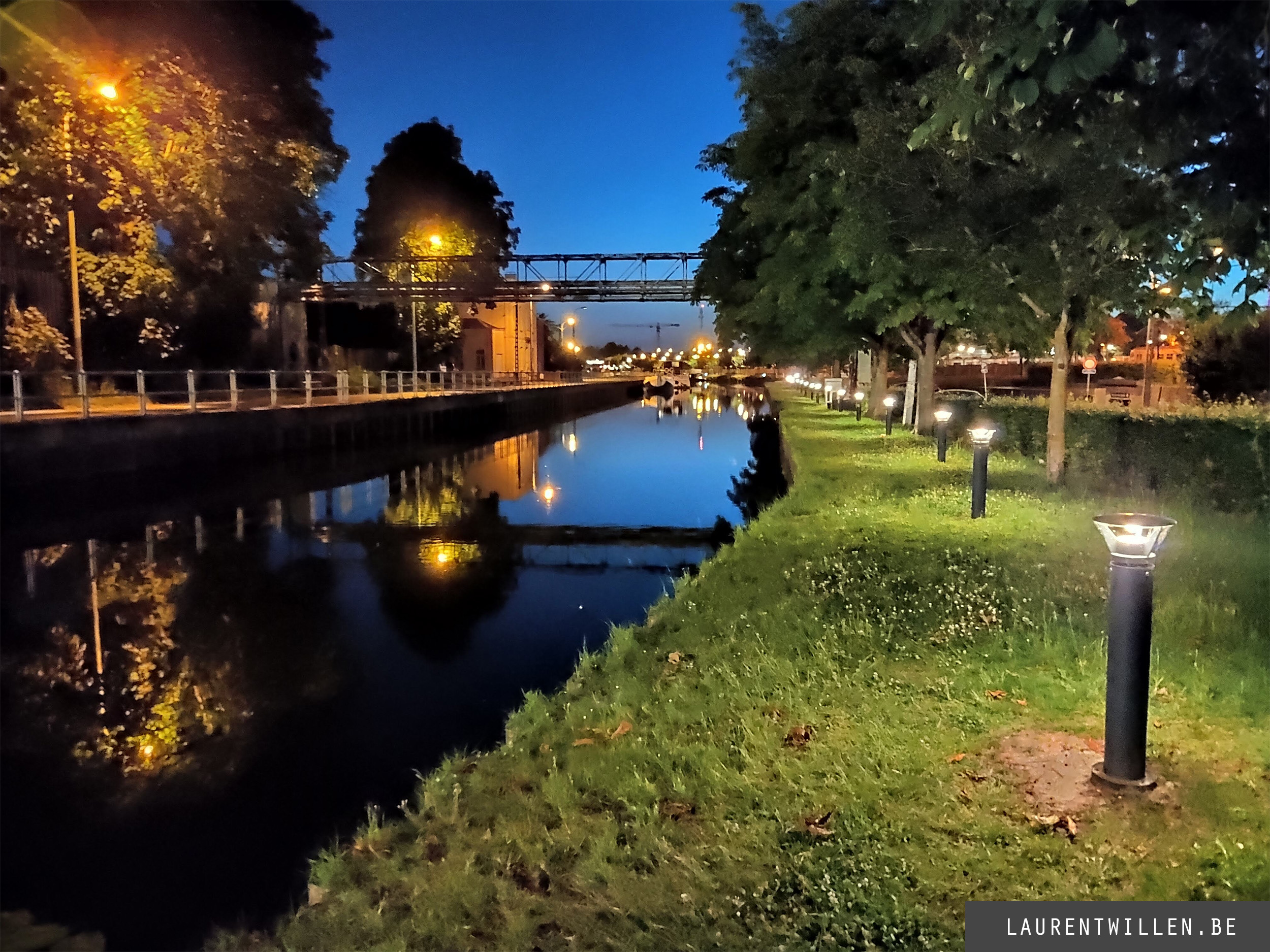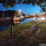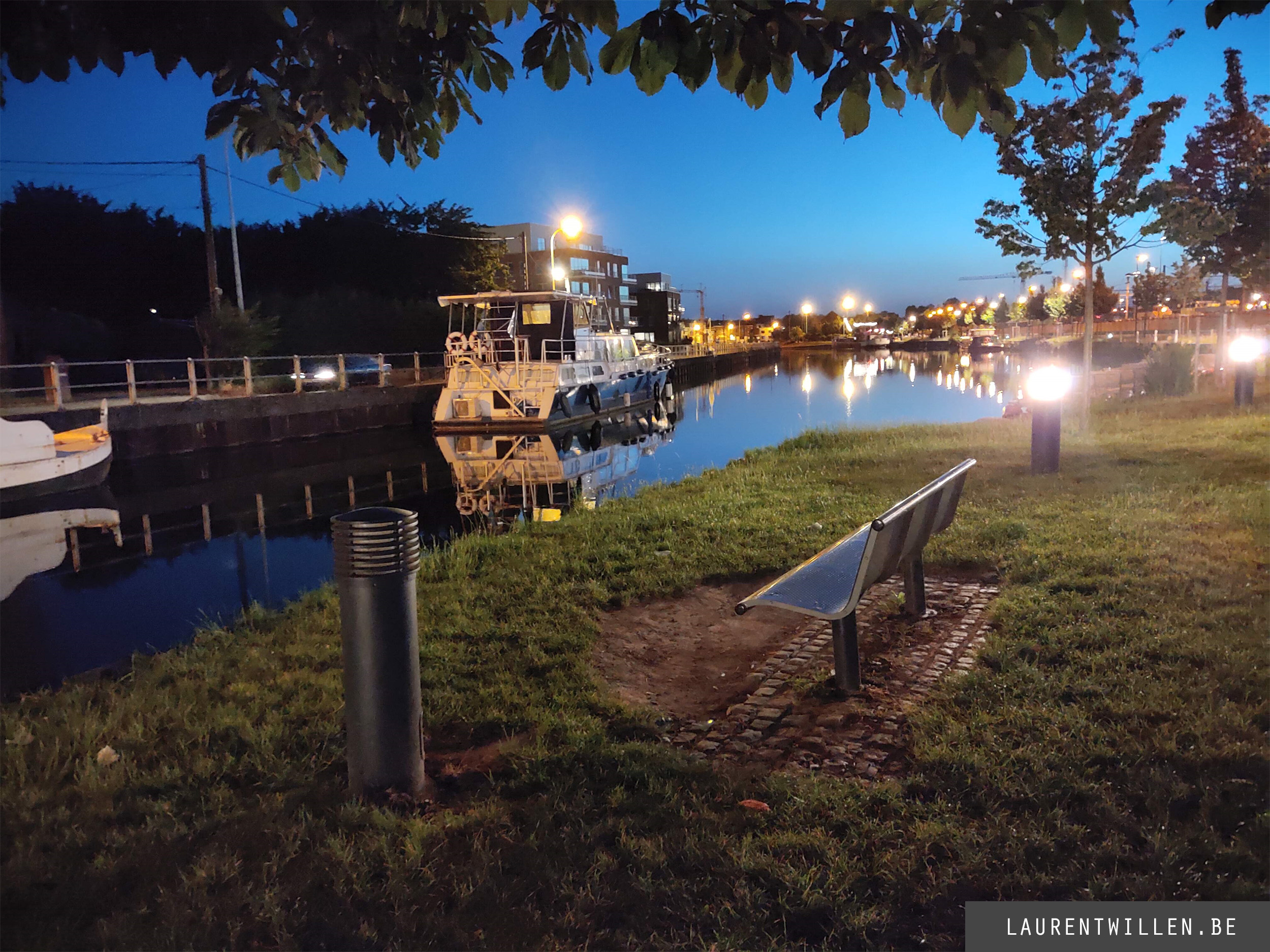 La première chose que je remarque c'est que l'effet de halo autour des lumières est atténué. La photo a également été prise à 1/25 avec une sensibilité à 3156 ISO, la photo est donc légèrement plus sombre et légèrement moins bruitée. La correction de la lumière sur les sources de lumière à une conséquence négative sur le reste de la photo car tous les détails sont lissés. On ne distingue plus l'herbe aussi bien qu'en mode automatique et l'accentuation des détails du bateau est trop forte.