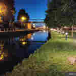 En mode automatique, le Meizu a choisi un obturateur à 1/25 pour un sensibilité à 3399. Avec cette vitesse d'obturation, la voiture dans le fond de la photo est presque figée et la photo est globalement assez nette. Avec 3399 ISO le bruit devrait être important mais il est à peine visible, cela veut dire que le téléphone applique un traitement. La scène est relativement bien éclairée, cela facilite donc les choses. Le niveau de détail est bon, on distingue très bien l'herbe en avant-plan. L'image est par contre brulée au niveau des sources de lumières, un halo vient enrober toutes les lumières fortes. La netteté de l'image diminue assez fortement après le bateau, on sent que le téléphone opère un lissage assez important au delà de cette zone.