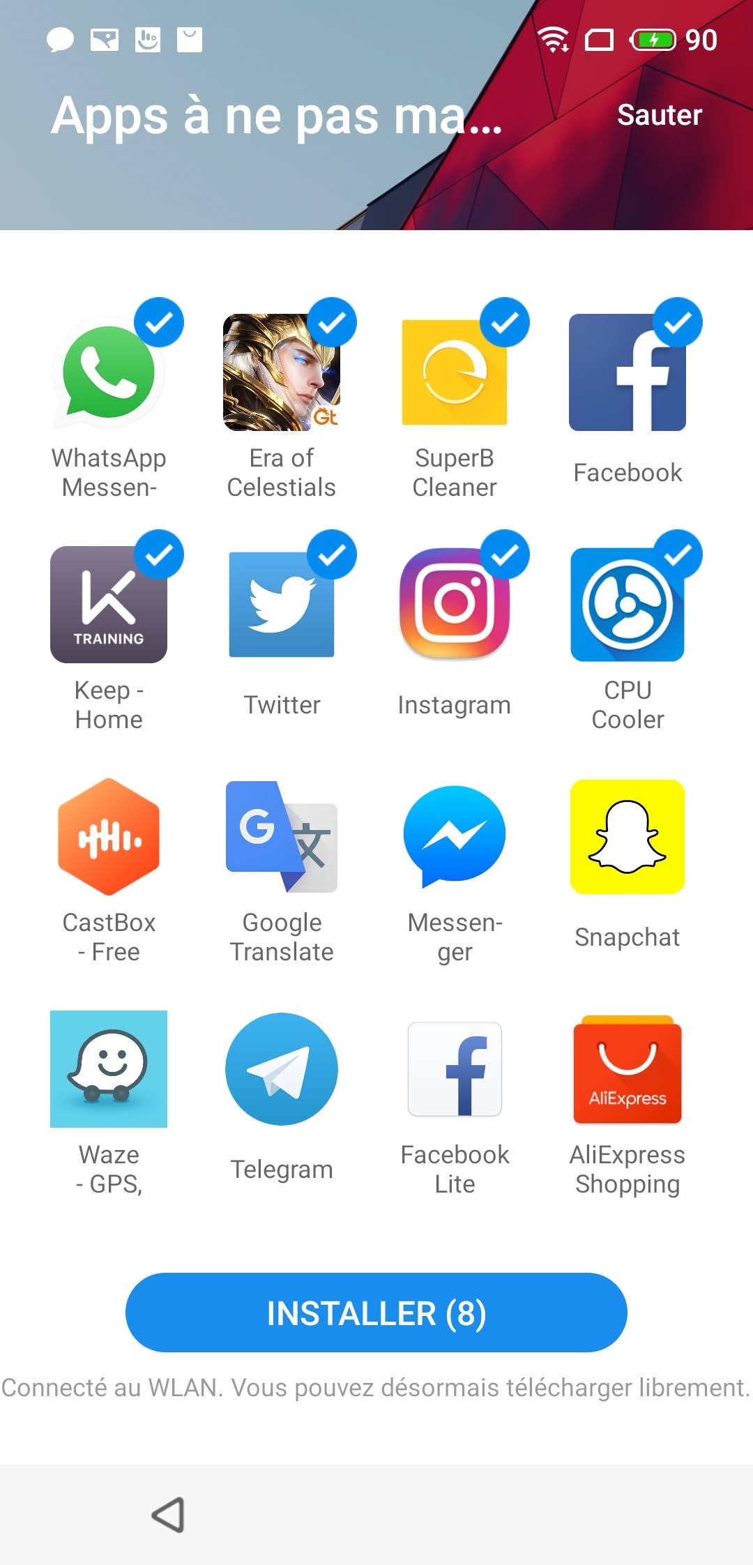 Comme je l'écrivais plus haut, je n'ai pas pu synchroniser mon profil au démarrage du téléphone, je n'avais donc plus aucune application de mon ancien téléphone, il a fallu que je télécharge toutes mes applications une à une.