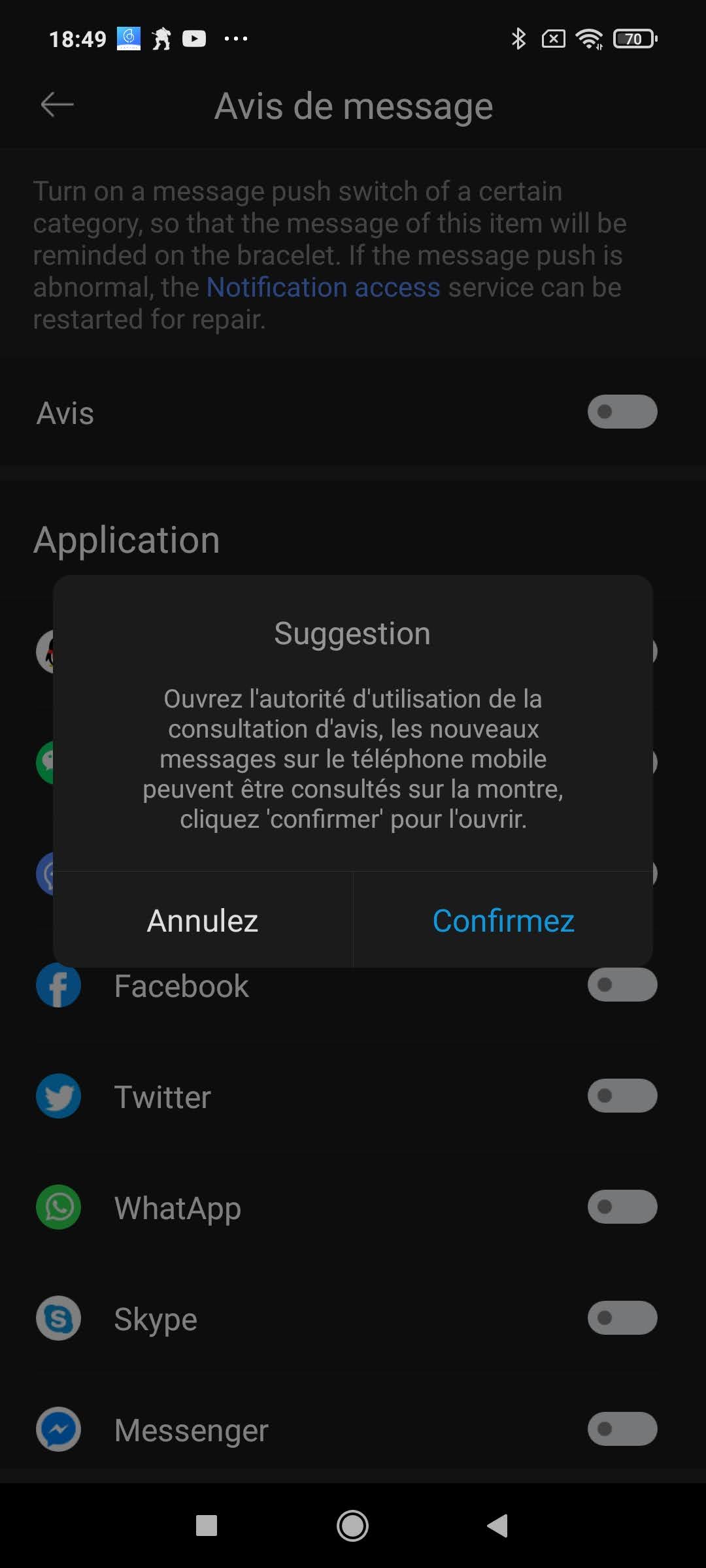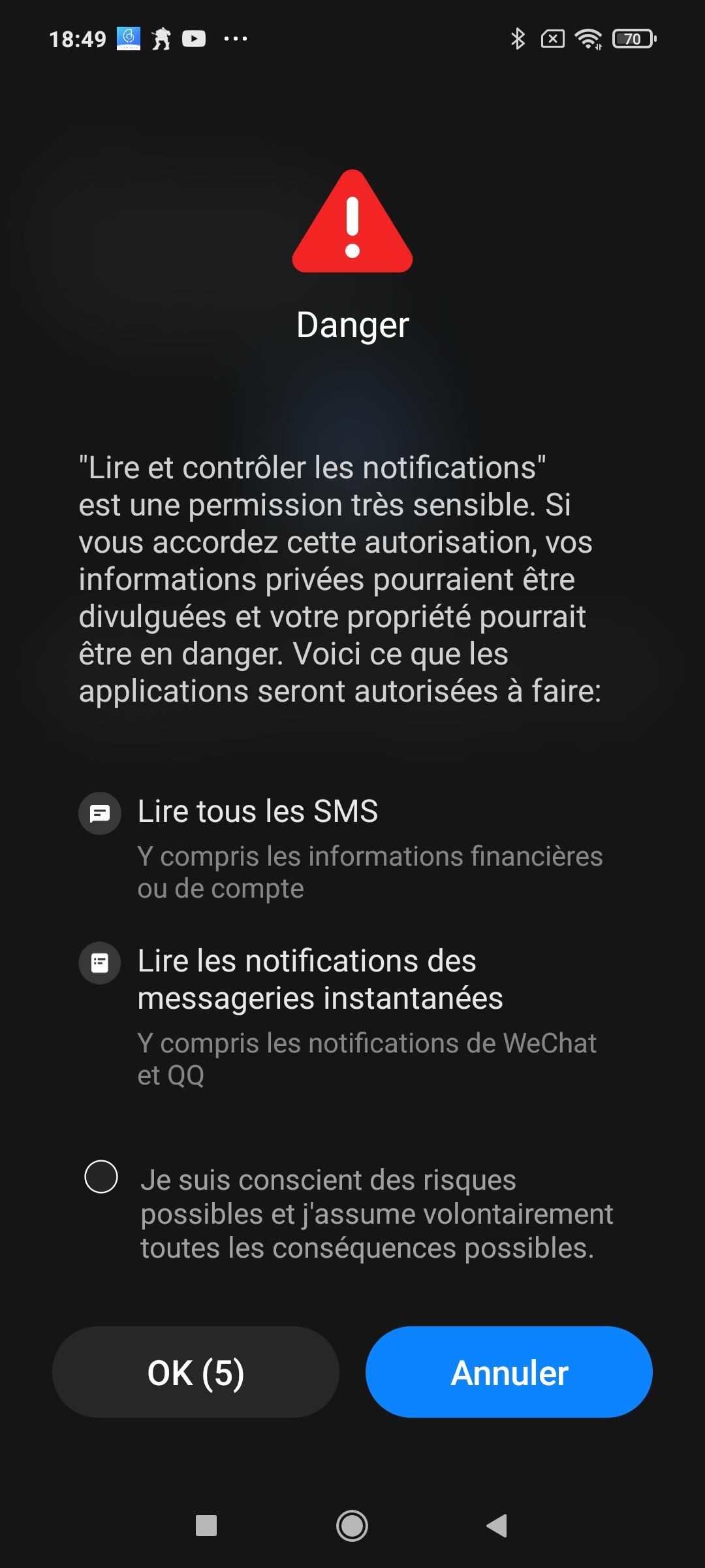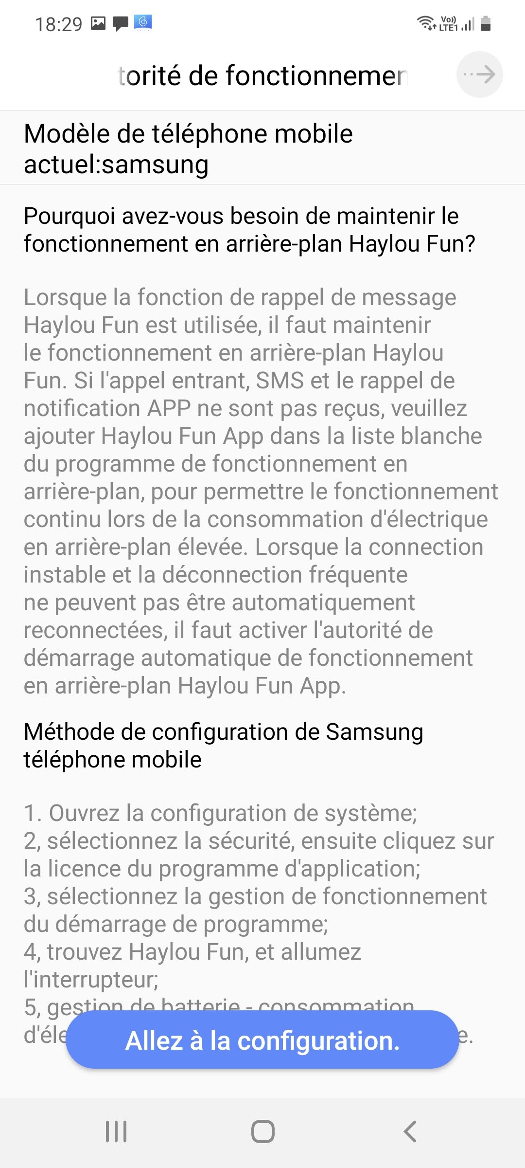 Pour configurer la Haylou RS3, il faut télécharger l'application Haylou Fun. Je n'avais pas encore eu l'occasion de tester cette application et je reviendrais là dessus plus loin dans cet article. Il n'est pas possible d'utiliser la montre sans passer par la configuration via l'application, je trouve ça assez dommage. La configuration peut se faire par détection automatique ou code QR. J'ai d'abord tenté de configurer la montre avec mon Samsung Galaxy S20 mais je n'y suis pas parvenu car l'application demande l'autorisation de fonctionner en arrière plan et cette option sur mon Samsung restait grisée. Je me suis donc rabattu sur un Poco X3 Pro et là par contre, la configuration a fonctionné du premier coup.La configuration (quand elle fonctionne) est assez facile mais j'ai été un peu surpris par le nombre d'autorisations demandées par l'application, cela ne m'a donné un sentiment très positif mais je verrais à l'usage si cela pose un quelconque problème. Il n'y a donc à ce stade pas de quoi s'inquiéter, si je constate quelque chose d'anormal, je le signalerais dans mon article.