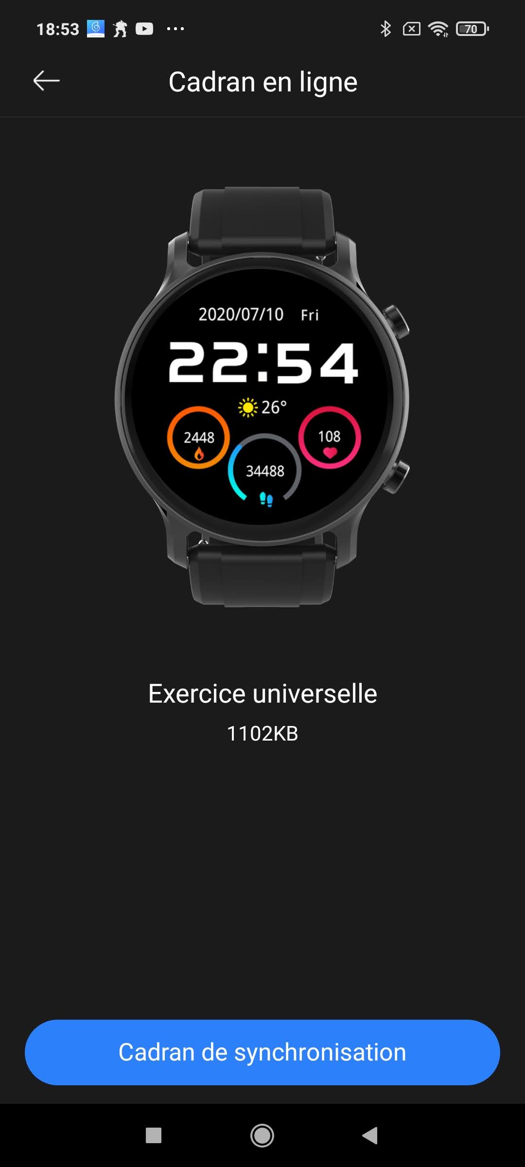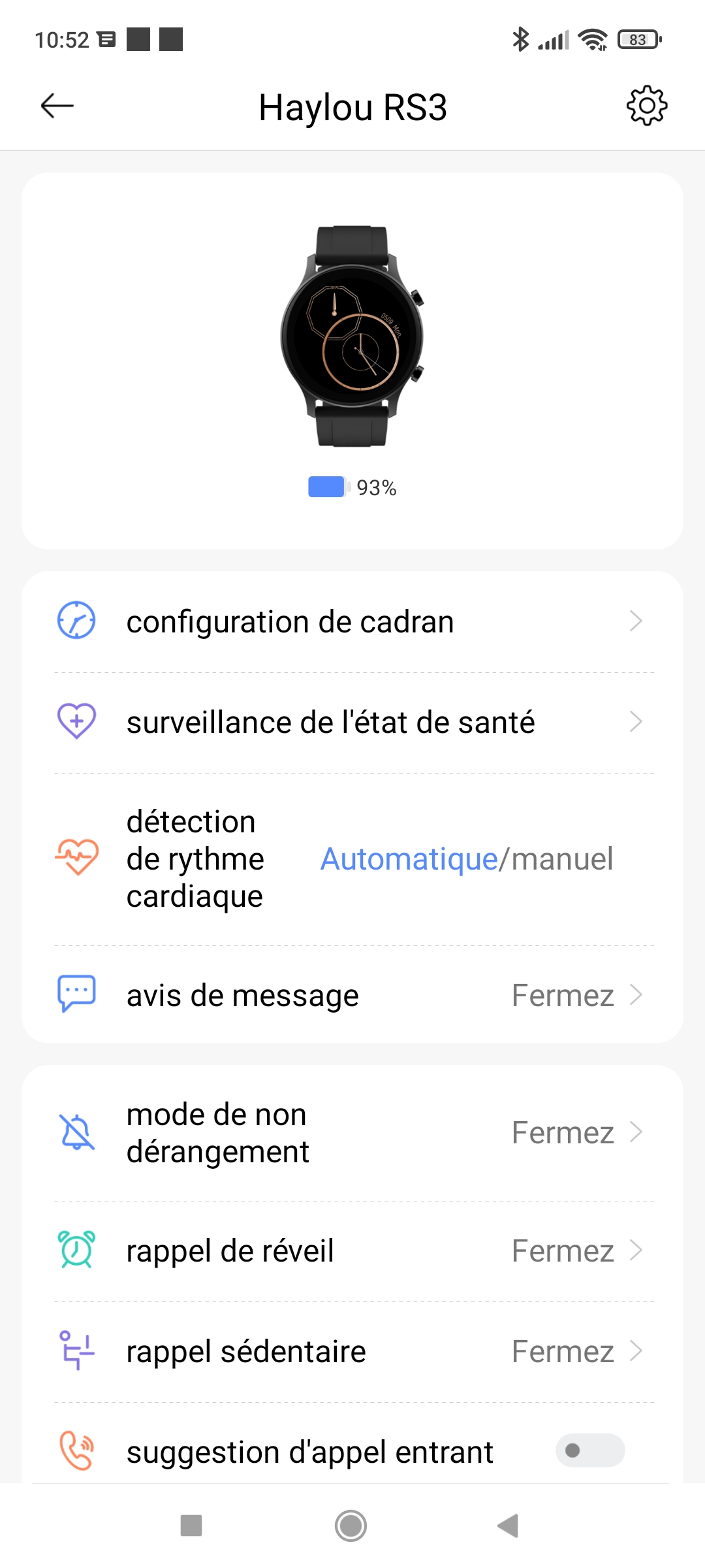 Pour pouvoir utiliser la Haylou RS3, vous devez télécharger l'application Haylou Fun sur le Play Store ou App Store. Cette application est gratuite. Dans son ensemble cette application est assez facile à utiliser, l'écran principal vous donne accès aux mesures les plus courantes (rythme cardiaque, sommeil, ...) mais si vous avez besoin d'autre chose il va falloir chercher un peu. Si vous voulez par exemple changer le cadran de la montre, vous devez cliquer sur l'icone indiquant l'état de la connexion de la montre, si vous voulez lister les exercices enregistrés par la montre il faut cliquer sur les trois petits points en haut à droite de l'écran avec la carte, ... bref, ce n'est pas toujours intuitif mais une fois que l'on sait où il faut cliquer, tout se passe très bien.Il y a quelques erreurs de traduction comme c'est souvent le cas avec les applications chinoises, les possibilités de personnalisation sont assez limitées, vous pouvez changer le cadran mais la liste est plutôt courte et les cadrans ne sont pas tous très intéressants.