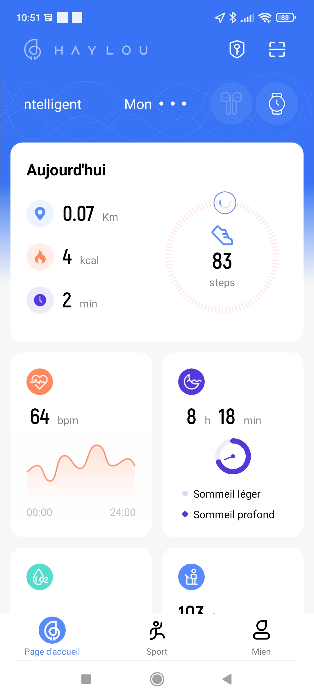 Comme la plupart des montres, la Haylou se laisse piéger par une position trop statique le soir. Si vous regardez la télé sans trop vous agiter, la montre va considérer que vous dormez. Je n'ai jamais accordé beaucoup de crédibilité à ce genre de mesure mais la plupart des montres m'indiquent que j'ai très peu de sommeil profond là où la Haylou indique que j'ai une très grande proportion de sommeil profond. Je ne sais pas si on peut faire confiance à ce genre de mesure.