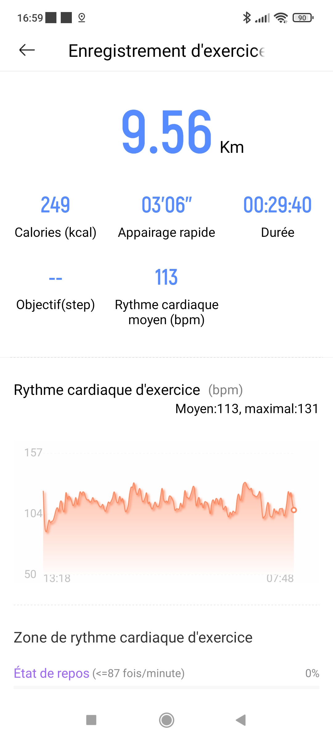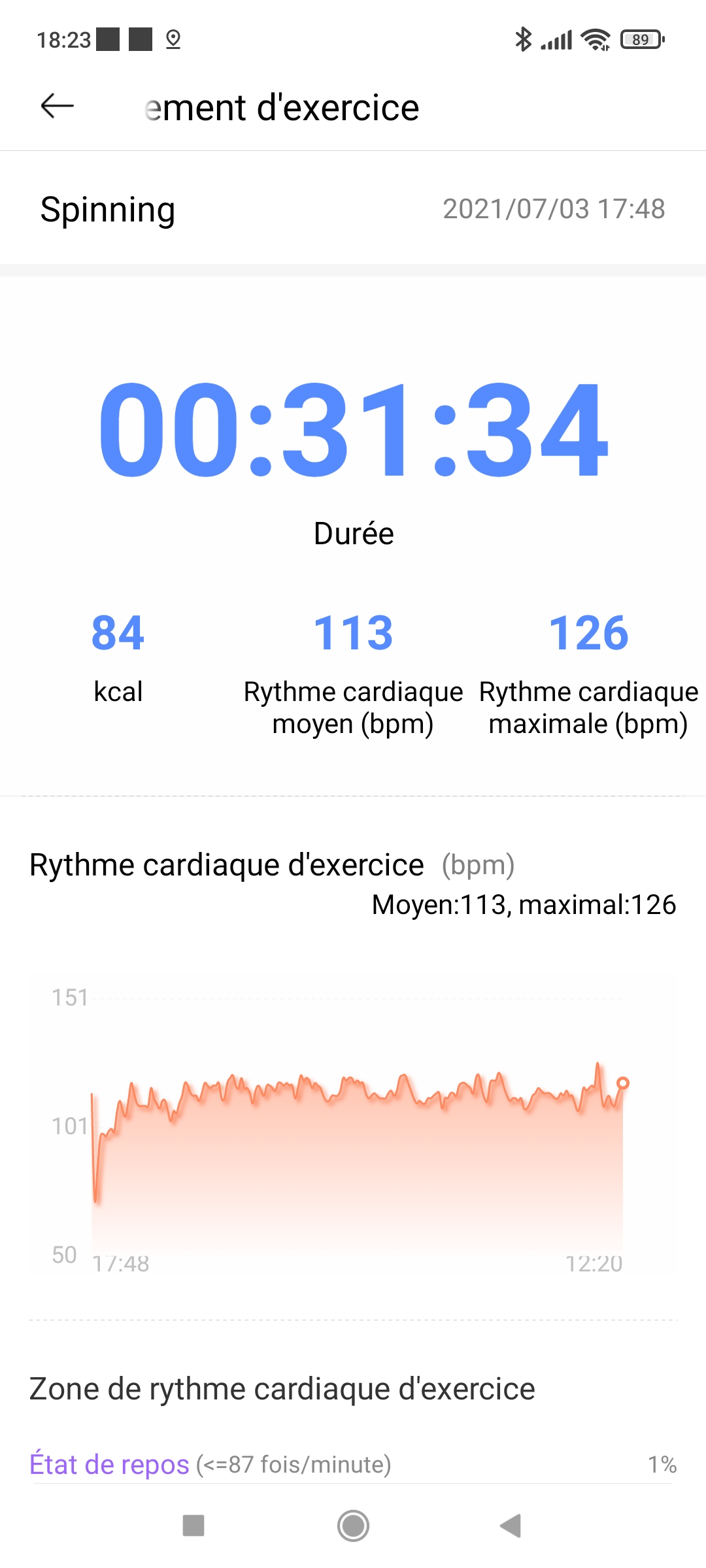 Vélo intérieur - rythme cardiaque moyen/max Haylou: 113/126