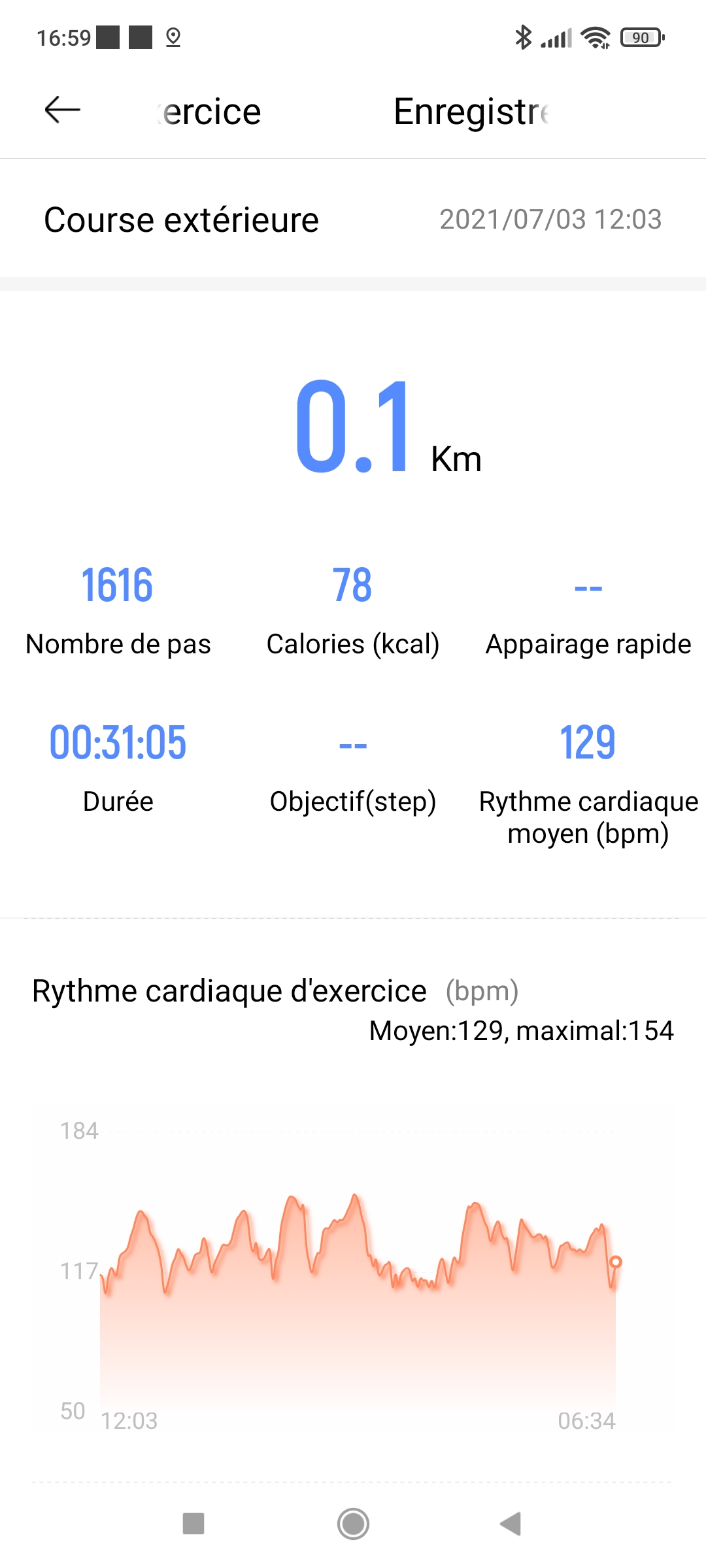 Vélo extérieur - rythme cardiaque moyen/max Haylou: 113/131