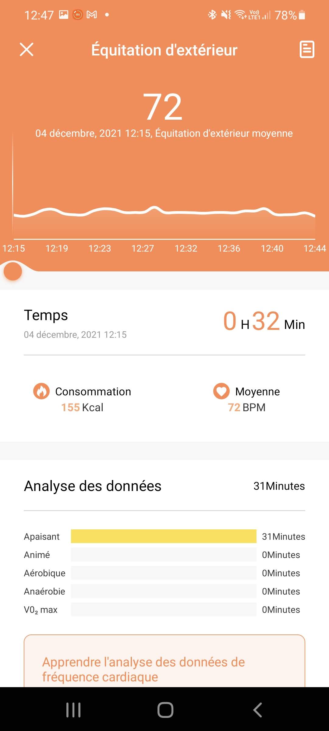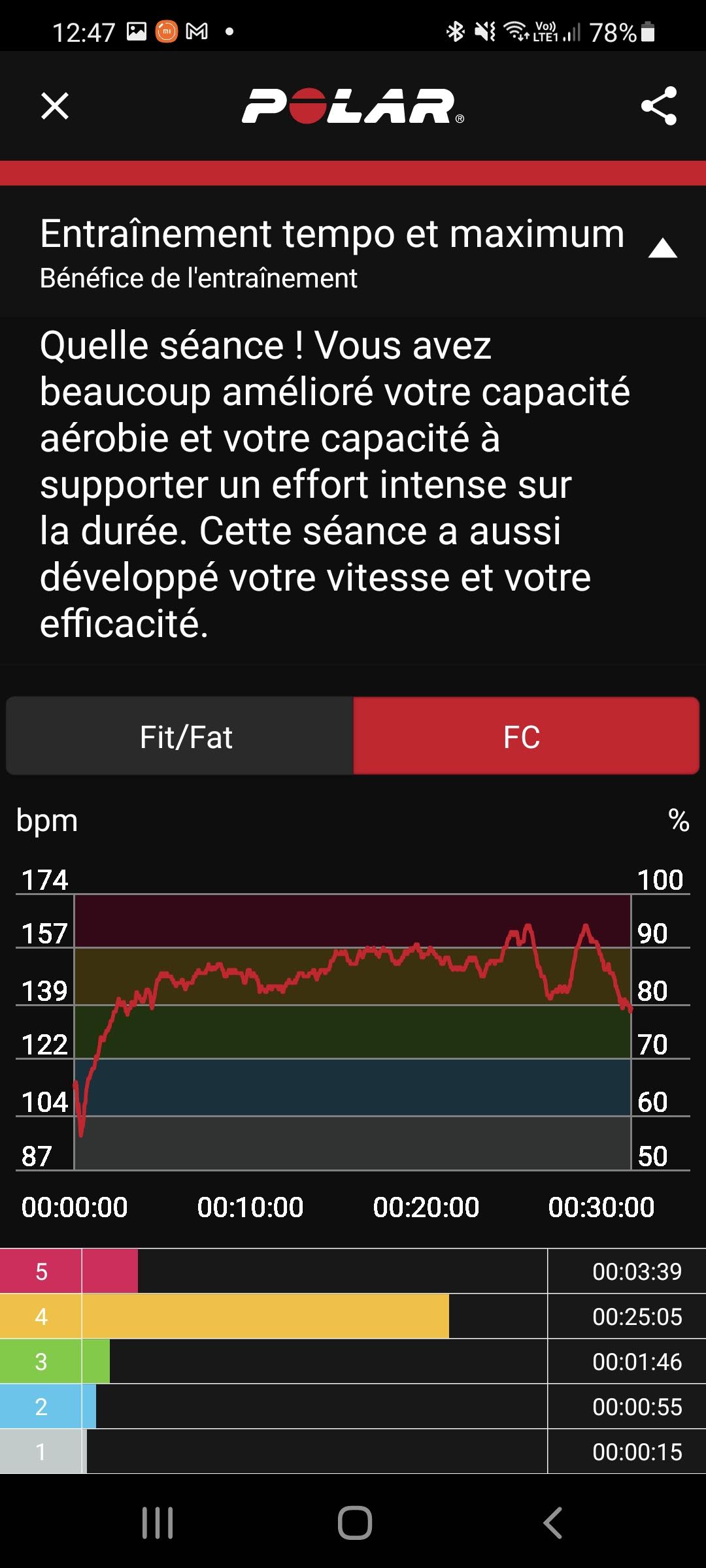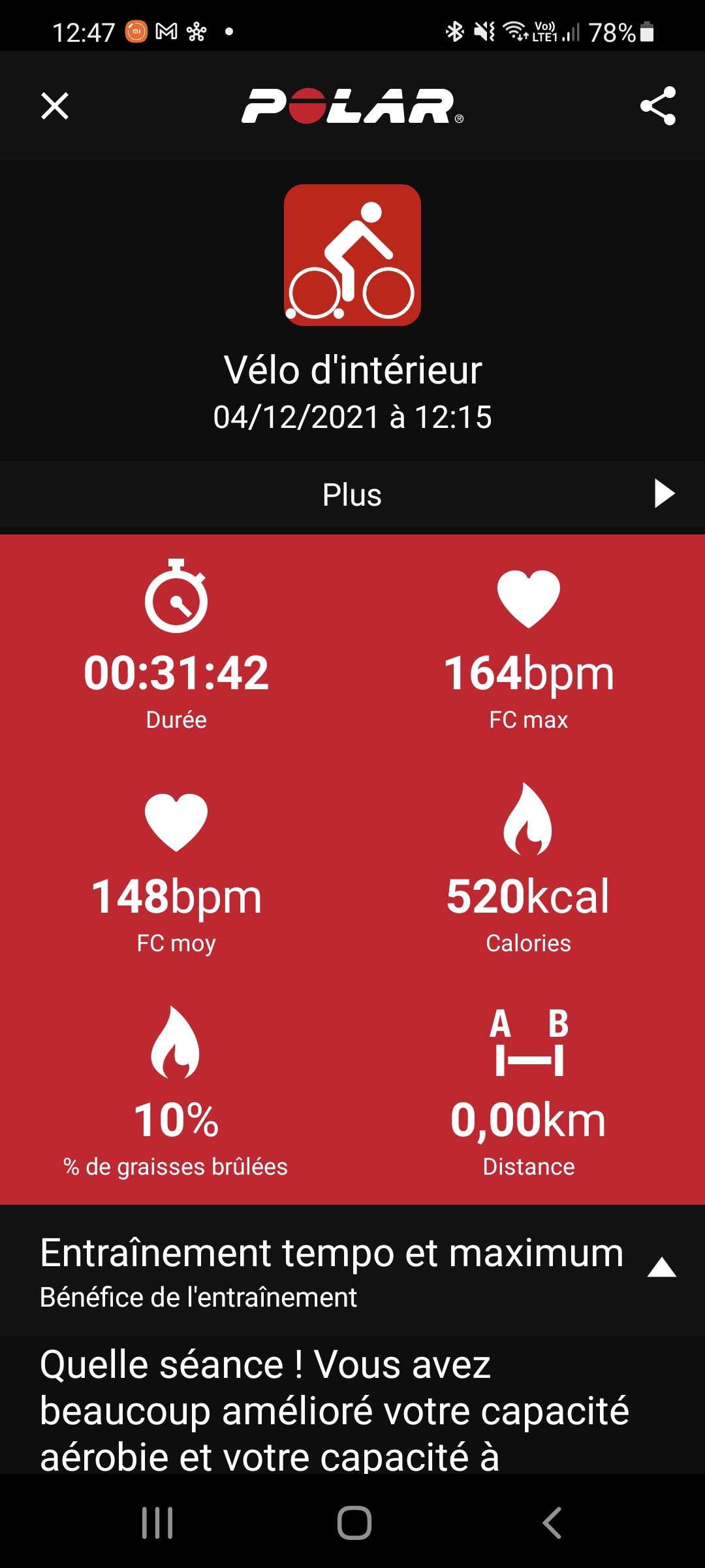 Je n'ai encore jamais eu l'occasion de tester une montre d'entrée de gamme capable de mesurer correctement les pulsations cardiaques et malheureusement c'est encore une fois le cas avec cette montre. Ce n'est pas un problème uniquement présent chez Kospet, c'est le cas avec toutes les montres d'entrée de gamme. La seule montre à moins de 40€ capable de mesurer correctement les pulsations cardiaques c'est la Mi Band. Sur les photos suivantes, vous verrez à quel point les mesures sont loin de la réalité:J'ai fait une session de vélo d'intérieur d'environ 30 minutes avec des efforts intenses qui ont ramené mes pulsations cardiaques au delà de 160 pulsations mais la montre n'est jamais monté au delà des 100 pulsations. Ma ceinture Polar H10 a mesuré un rythme moyen de 148 pulsations par minute avec un maximum à 164, la Kospet a mesuré 71 pulsations par minute en moyenne. C'est donc très très loin de la réalité. Cette montre n'est donc pas conçue pour ceux qui veulent suivre leurs performances sportives.