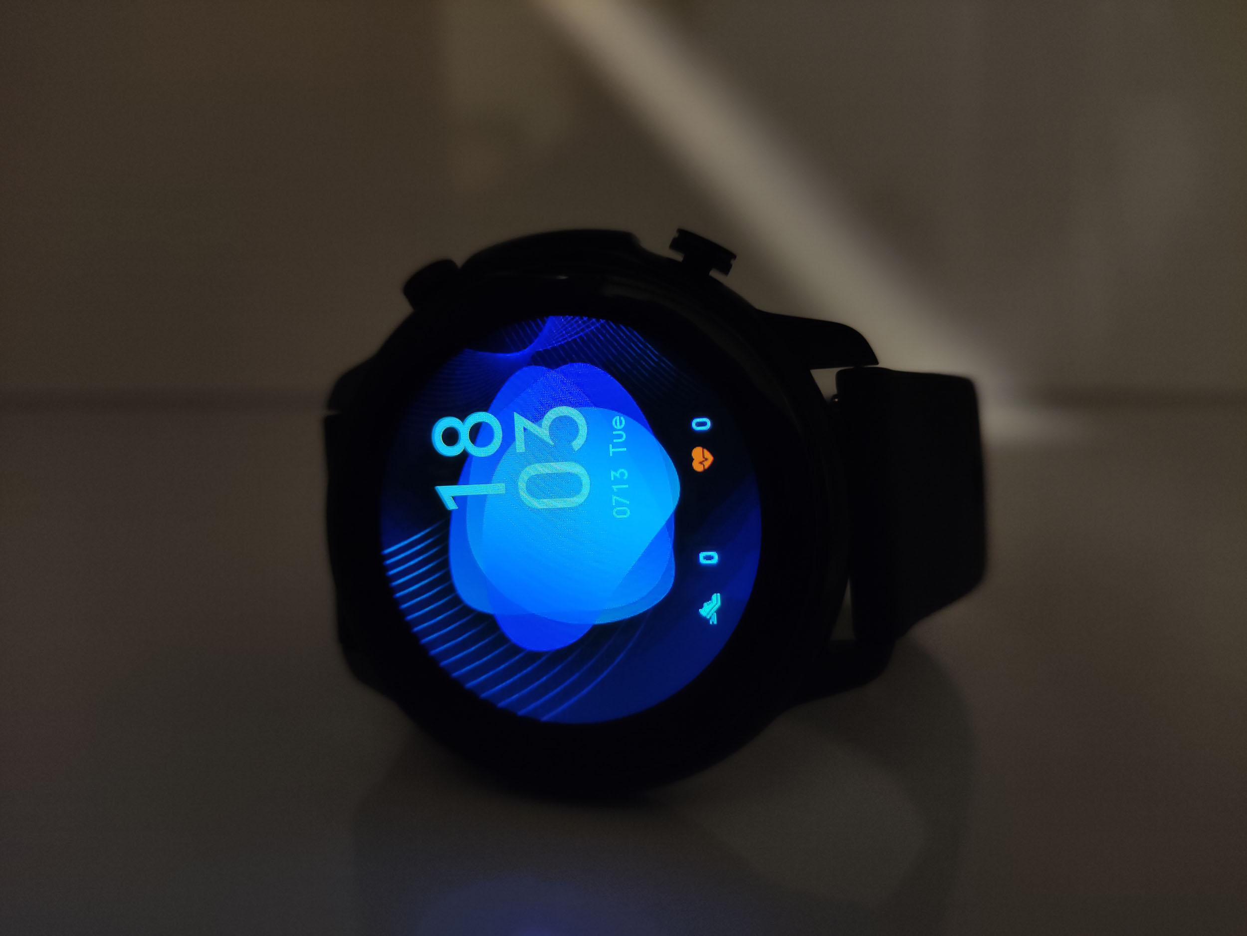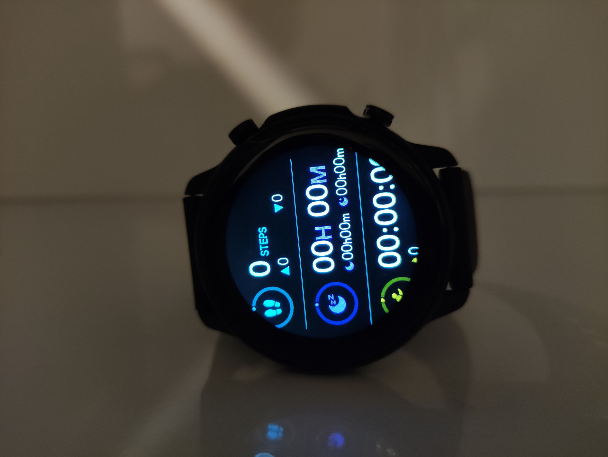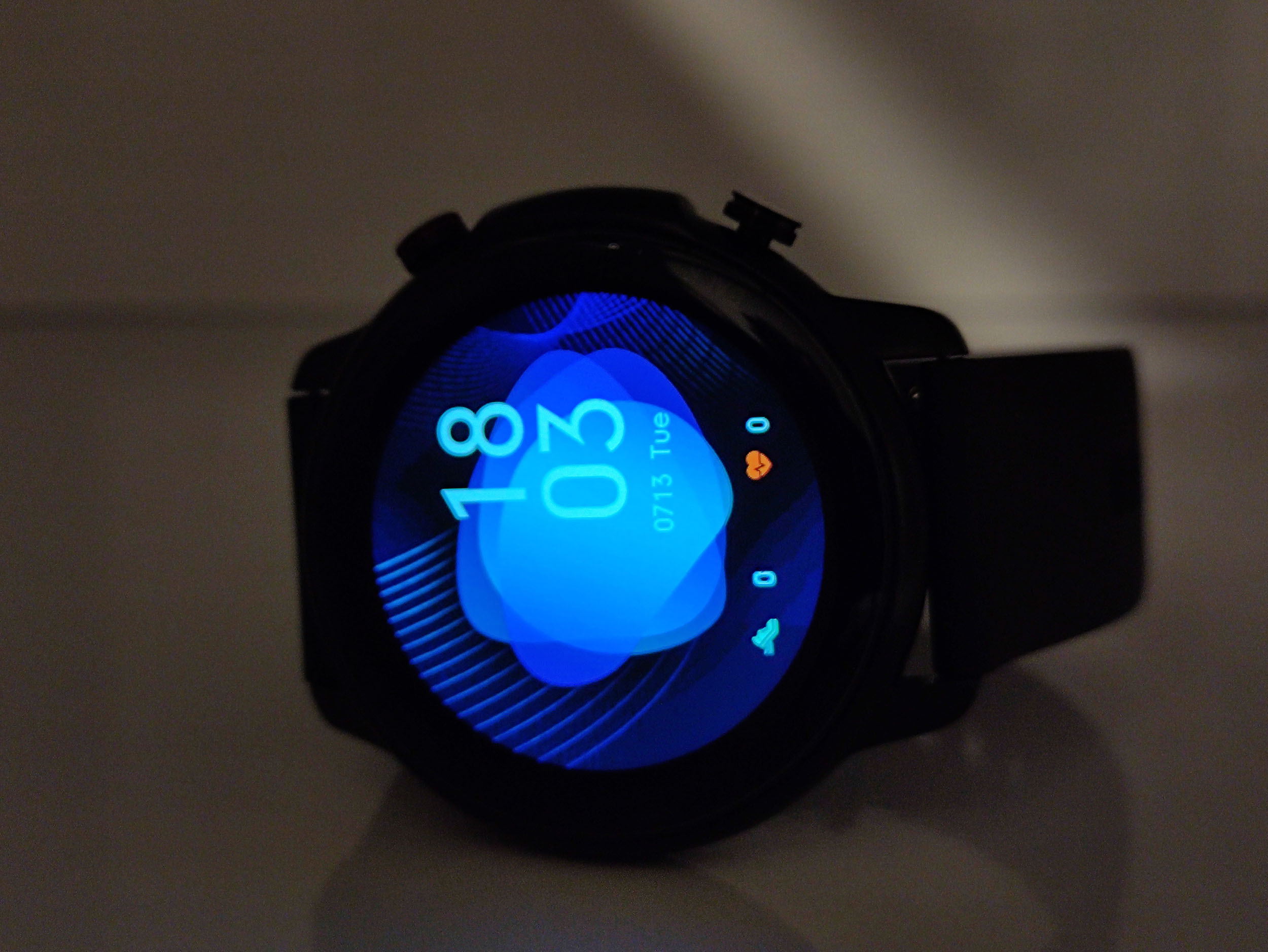 Comme je l'écrivais plus haut, je trouve que le contraste de cet écran est vraiment bon pour un écran IPS. Les photos dans cet article ont été prises de très près à un tel point que la montre est plus grande sur la photo qu'en réalité, ceci explique pourquoi on aperçoit un écart entre les pixels. A l'oeil nu je ne vois pas cet écart. L'écran a une résolution suffisante pour pouvoir afficher le cadran et les écrans de mesures avec un bon niveau de netteté. La luminosité de l'écran permet de l'utiliser un peu partout mais je pense qu'en plein soleil, cette luminosité sera insuffisante. En novembre, il n'y a malheureusement plus beaucoup de soleil mais la lumière forte de mon studio est un bon test. A plein luminosité, je peux à peine lire l'écran de la montre, ce sera sans doute aussi le cas en plein soleil.