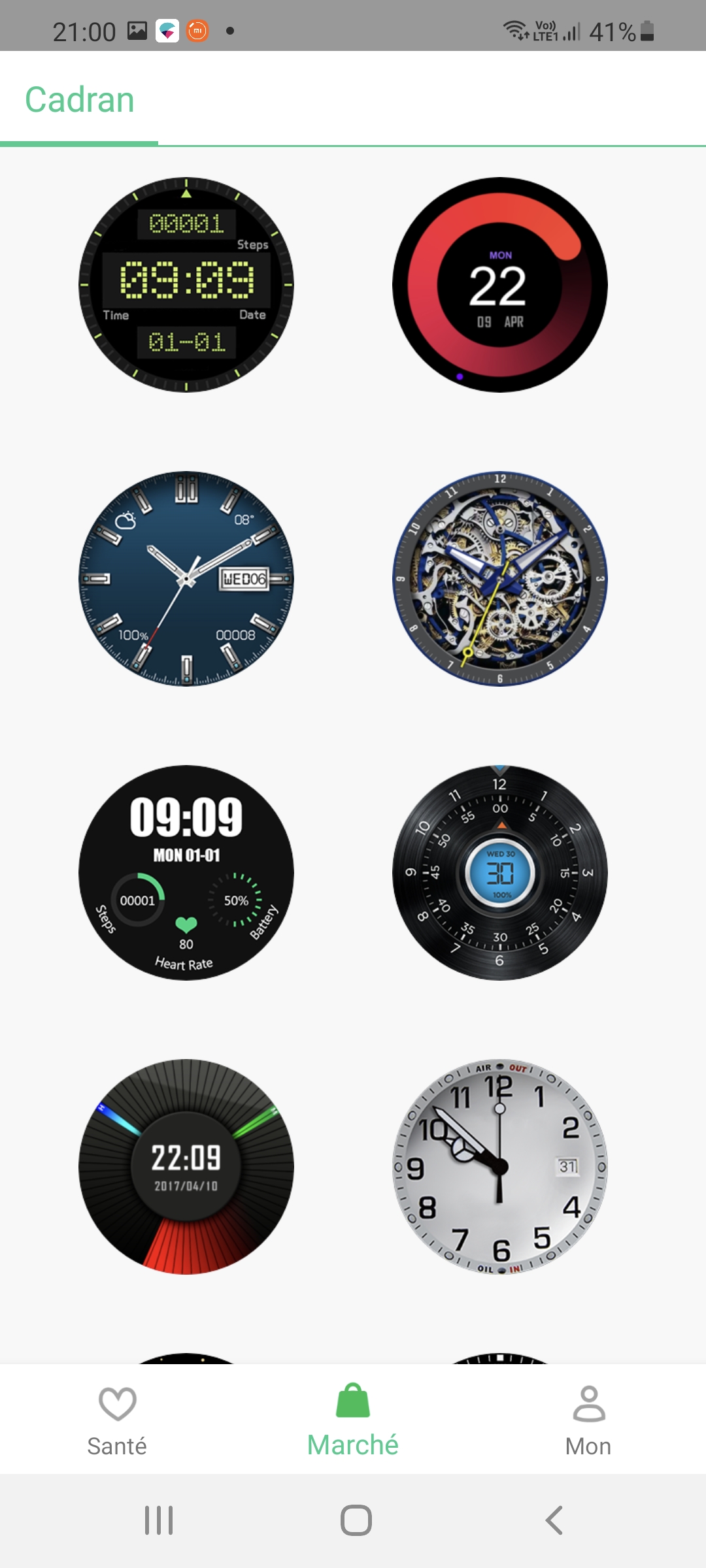 L'application est assez simple à utiliser, l'écran d'accueil regroupe toutes les mesures de base (coeur, nombre de pas, oxygène dans le sang, sommeil, ...) et pour chaque mesure vous pouvez consulter les données historiques. Vous pouvez également télécharger de nouveaux cadrans pour la montre, il y a des cadrans de tous les types et certains sont vraiment bien conçus. Vous pouvez également paramétrer la montre mais je n'ai pas eu à modifier les paramètres de base, tout a fonctionné du premier coup.