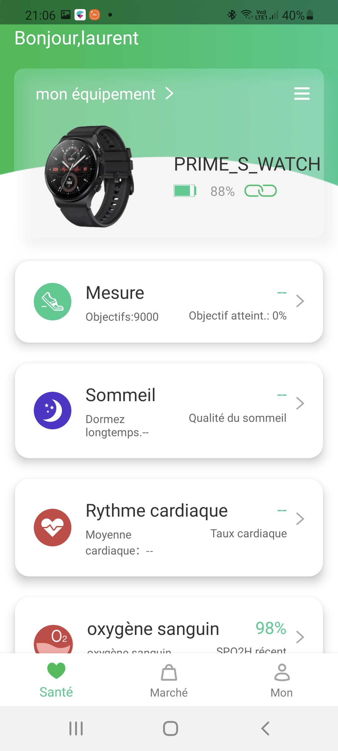 - mesures des pulsations cardiaques, oxygène dans le sang, nombre de pas, modes sportifs