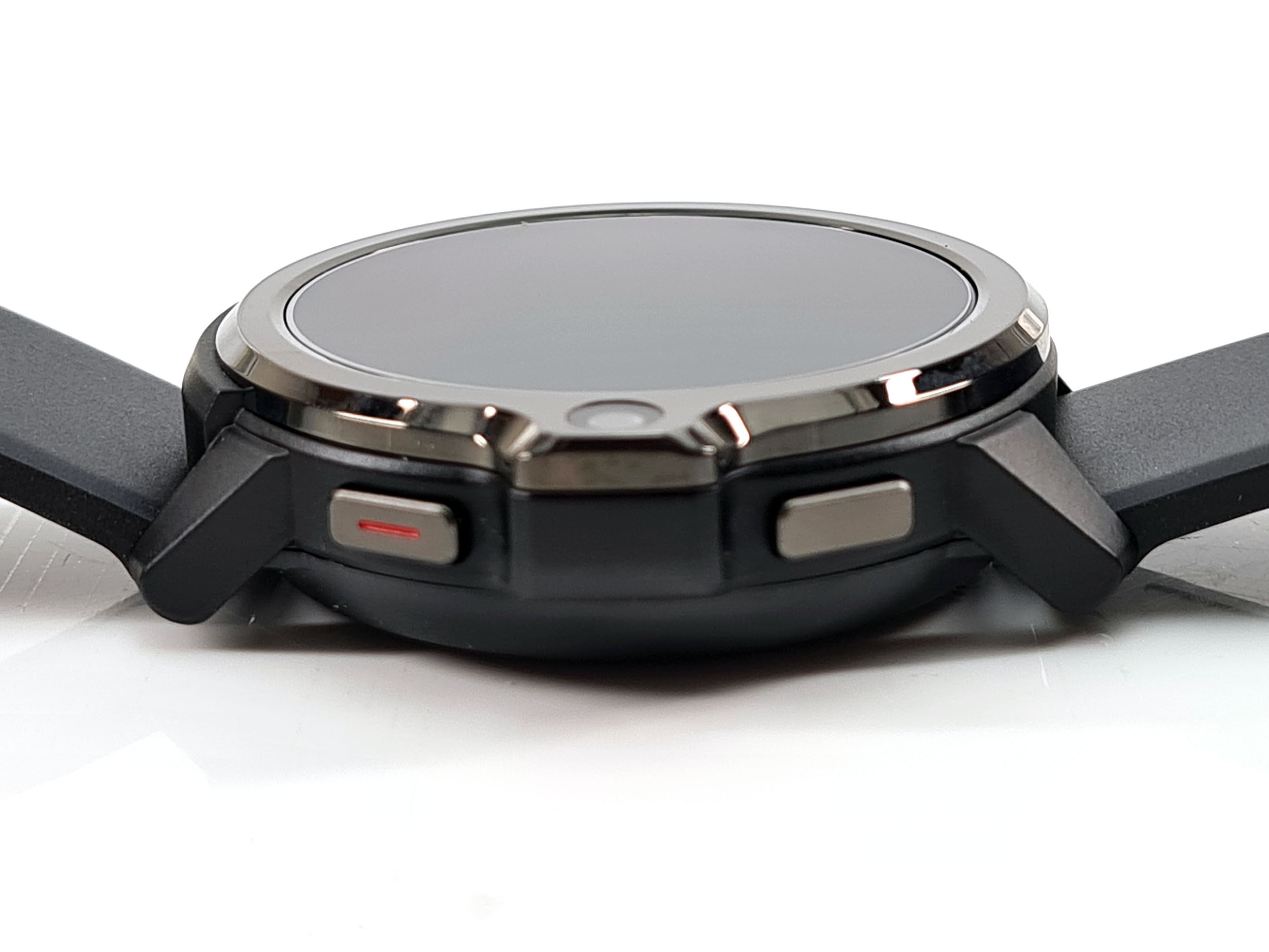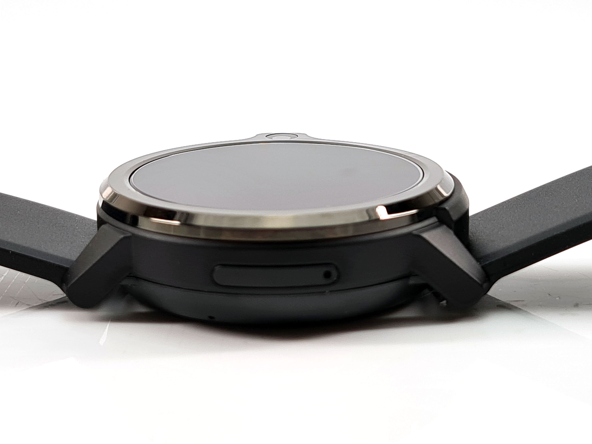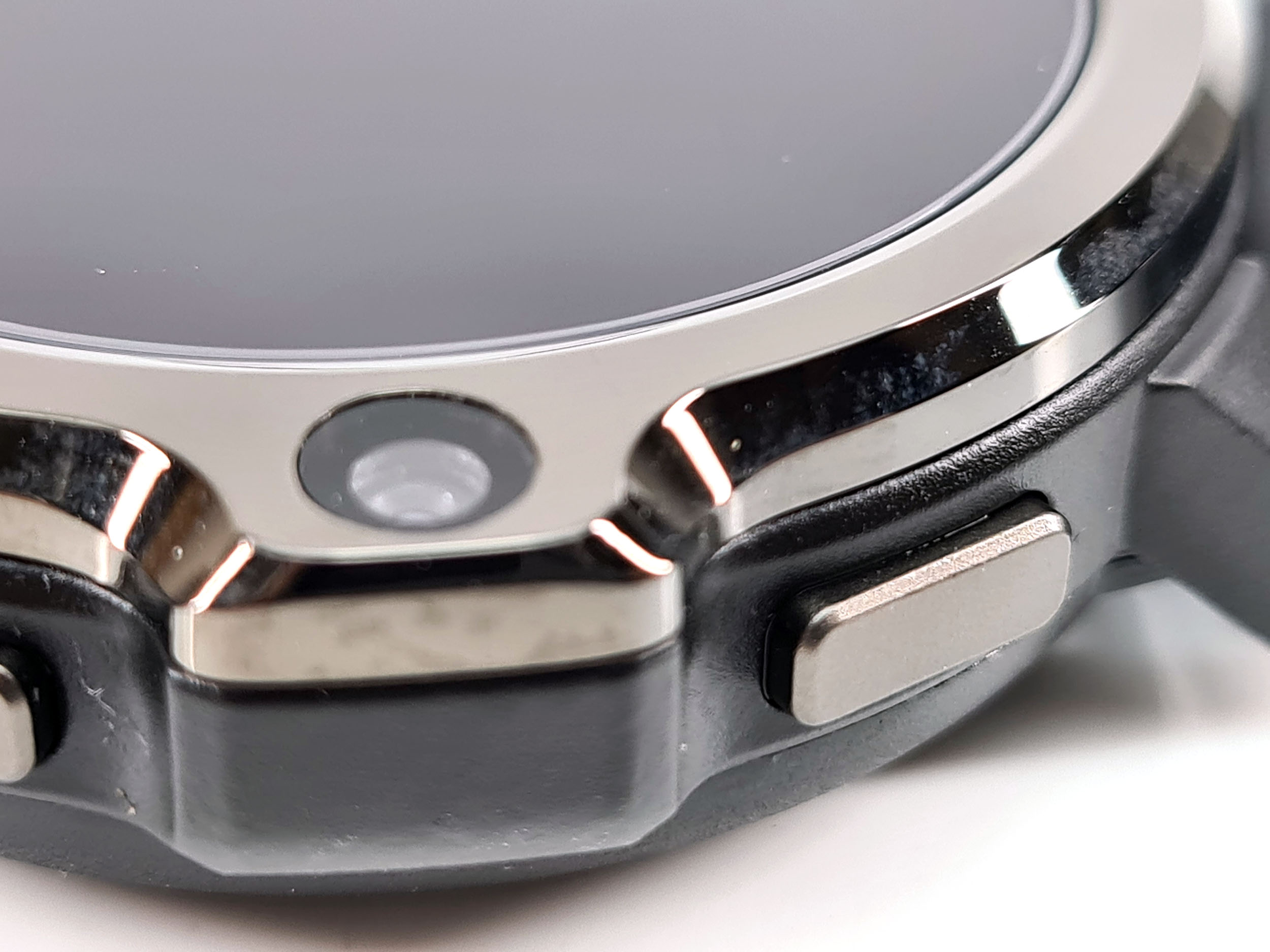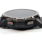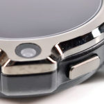 Malgré sa taille et son épaisseur (16.7 mm), je n'ai jamais senti la moindre gène au poignet et sa forme circulaire vous évitera d'accrocher vos vêtements. La caméra faciale est placée sur la droite mais ne gène nullement les mouvements du poignet, elle est accompagnée par deux gros boutons qui s’intègrent parfaitement dans le cadran de la montre. Le bouton du haut permet de revenir en arrière, le bouton du bas permet d'allumer la montre et accéder aux menus.