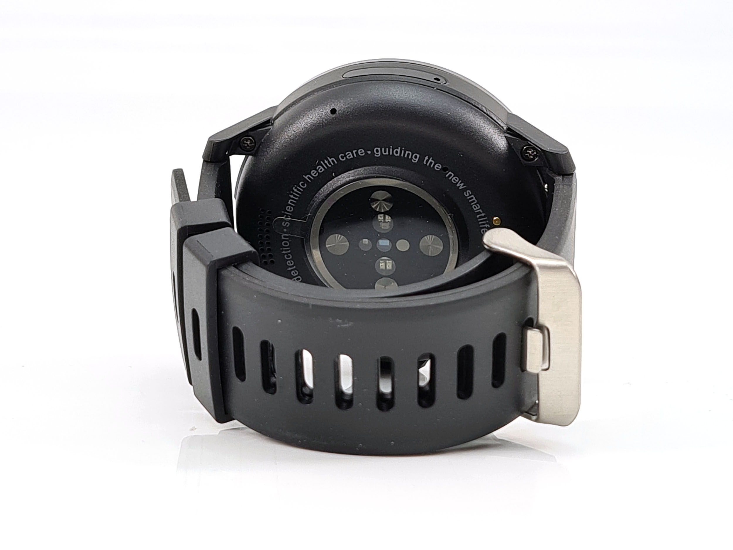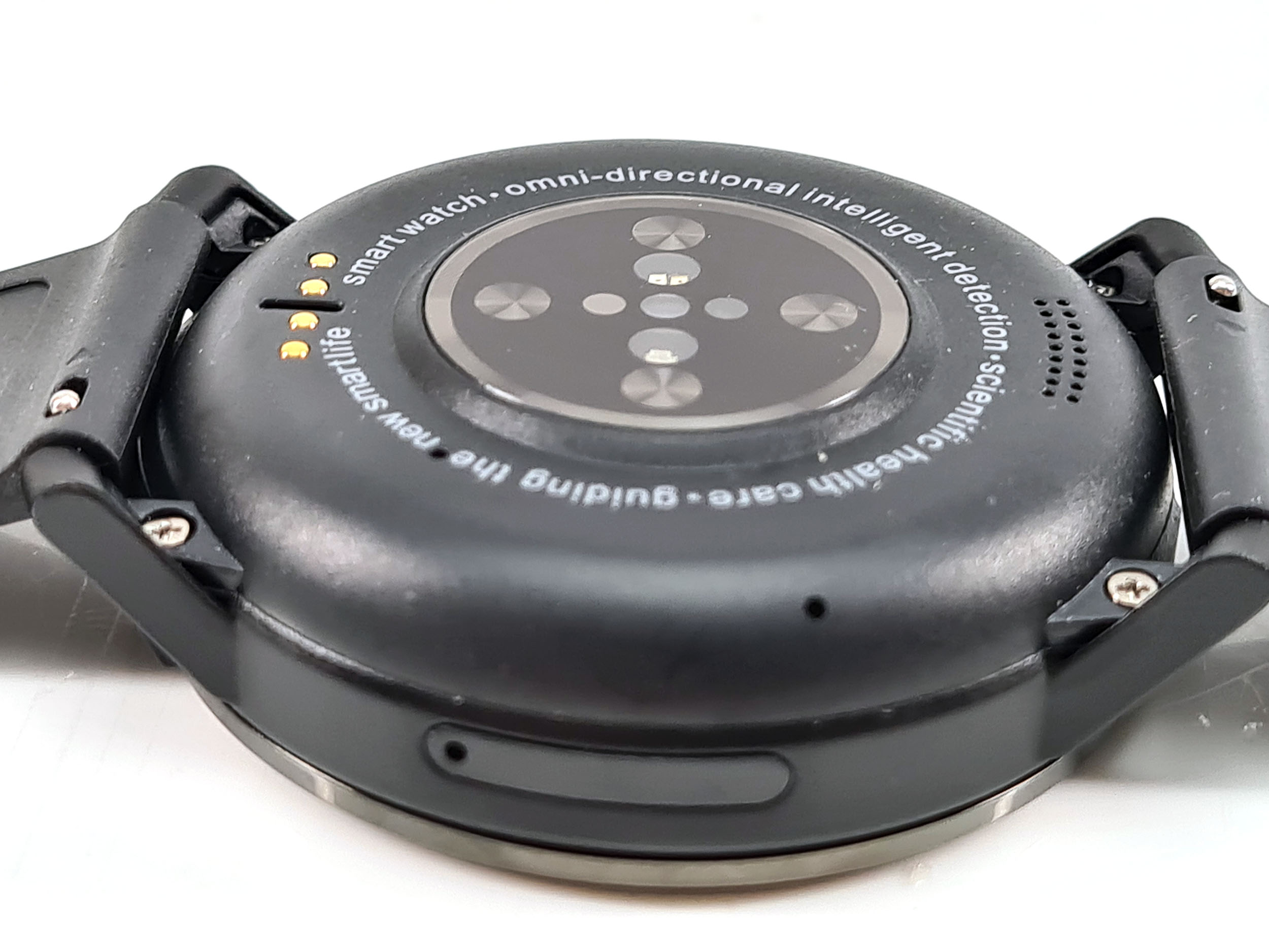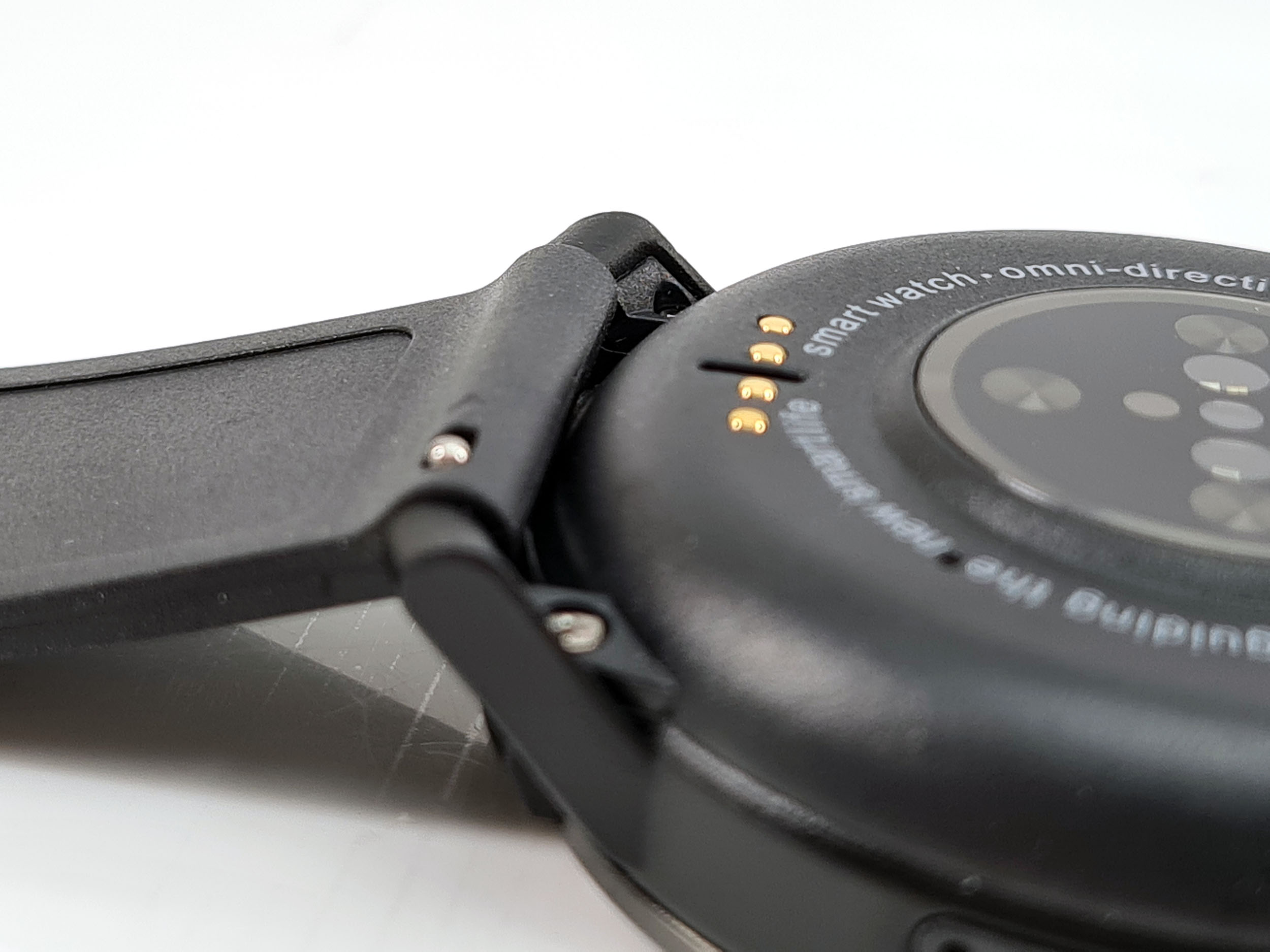 Malgré sa taille et son épaisseur (16.7 mm), je n'ai jamais senti la moindre gène au poignet et sa forme circulaire vous évitera d'accrocher vos vêtements. La caméra faciale est placée sur la droite mais ne gène nullement les mouvements du poignet, elle est accompagnée par deux gros boutons qui s’intègrent parfaitement dans le cadran de la montre. Le bouton du haut permet de revenir en arrière, le bouton du bas permet d'allumer la montre et accéder aux menus.