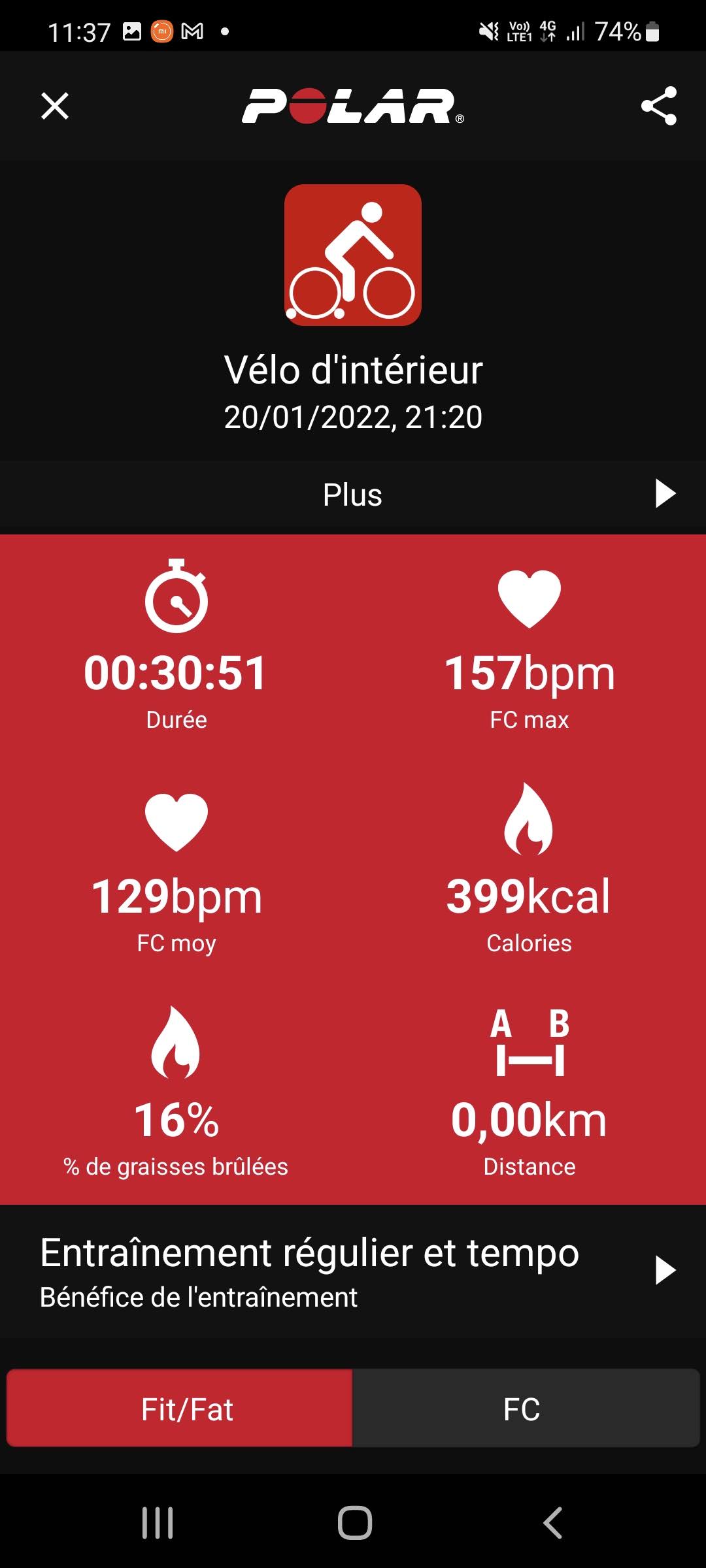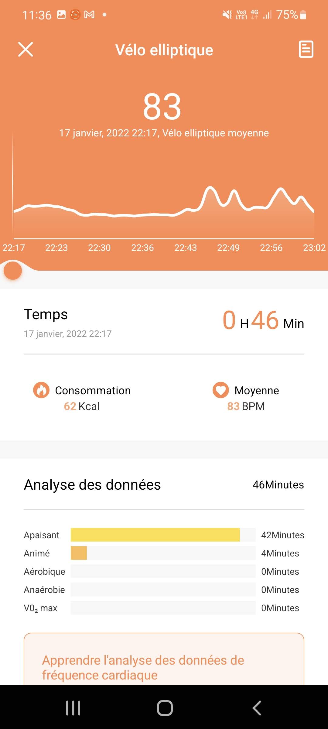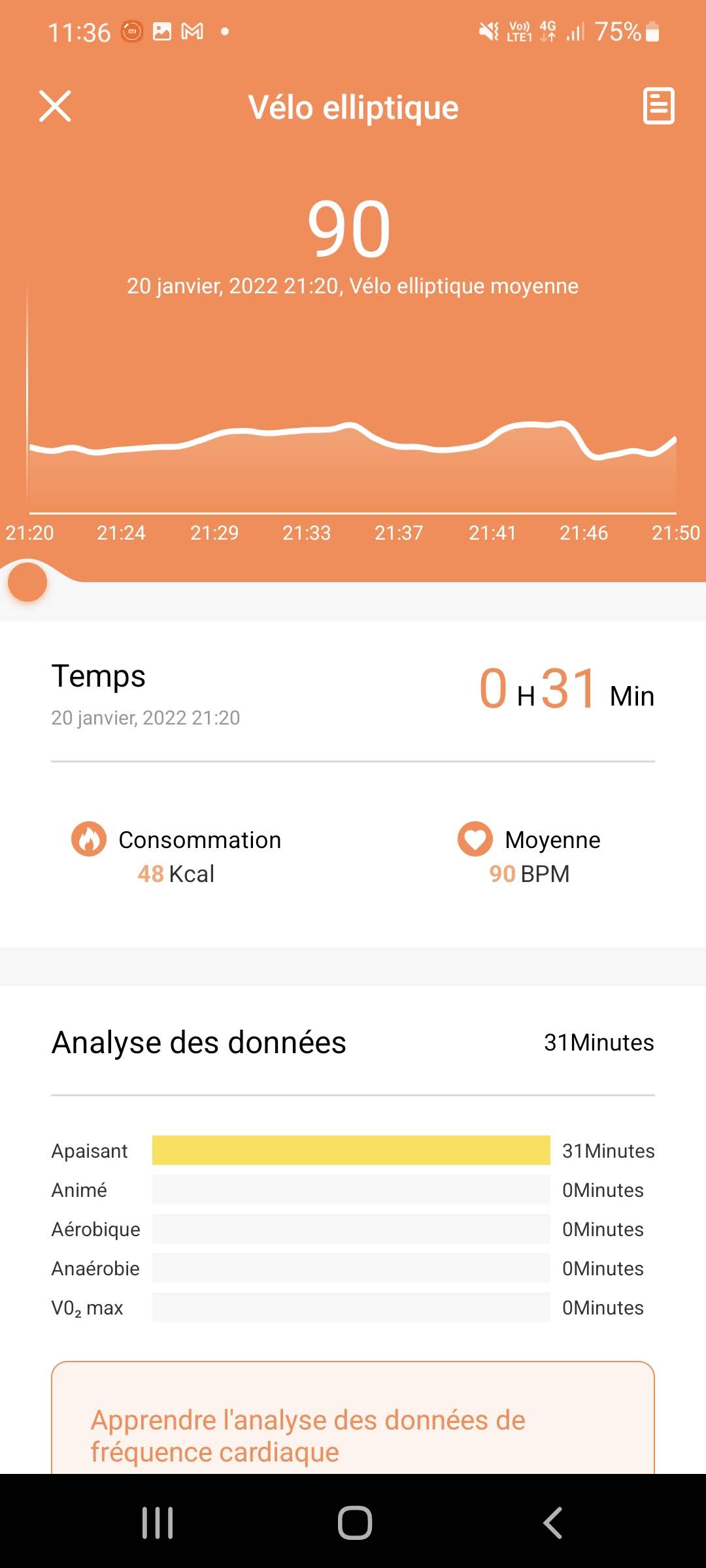 Rythme cardiaque moyen: 129 (avec 157 comme maximum)