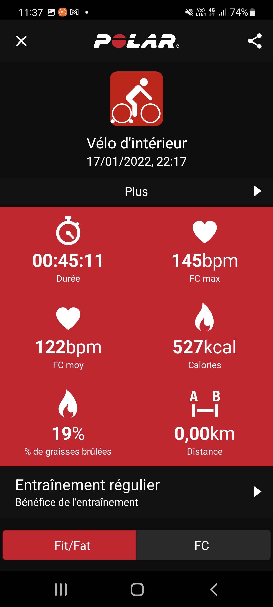 Rythme cardiaque moyen: 122 (avec 145 comme maximum)