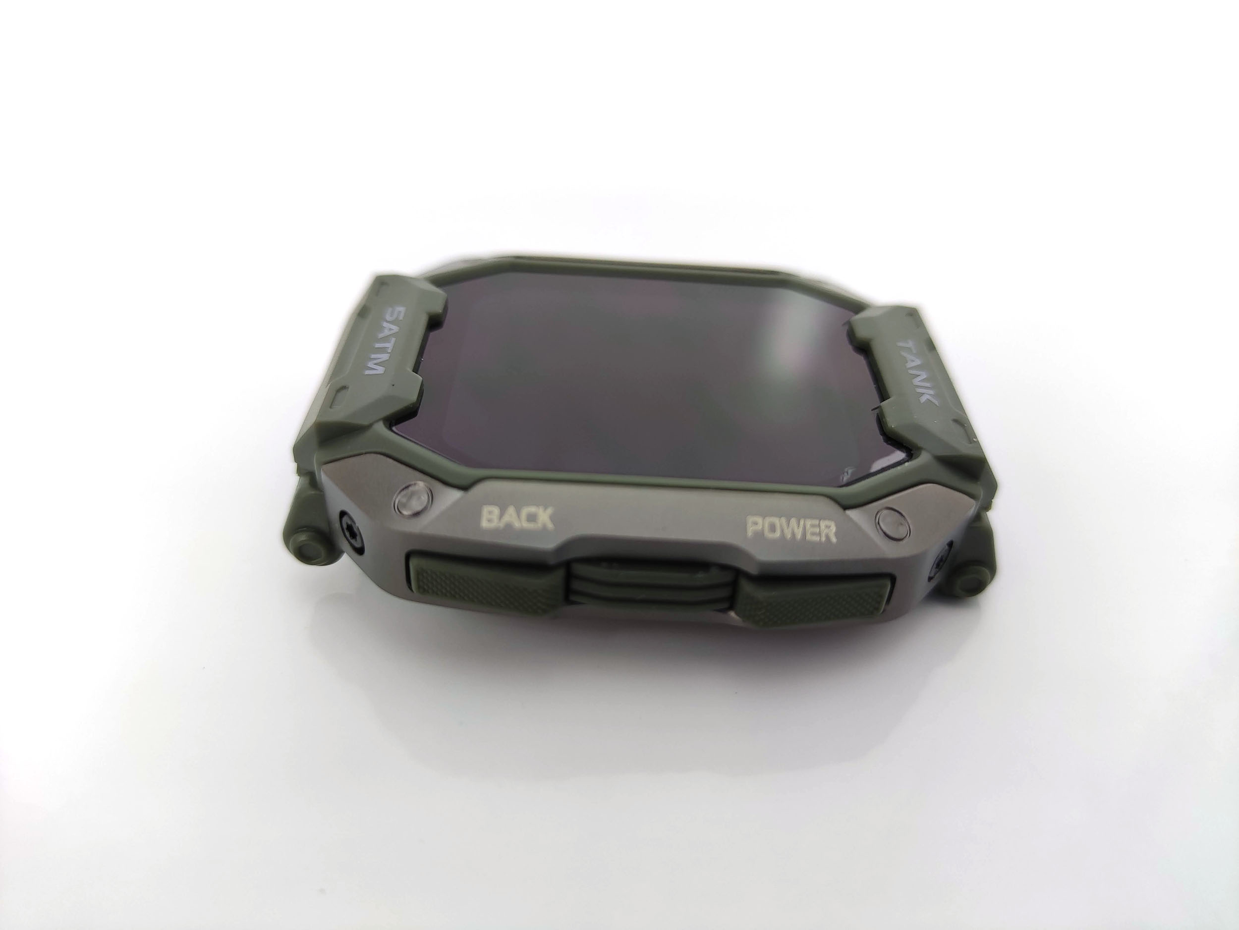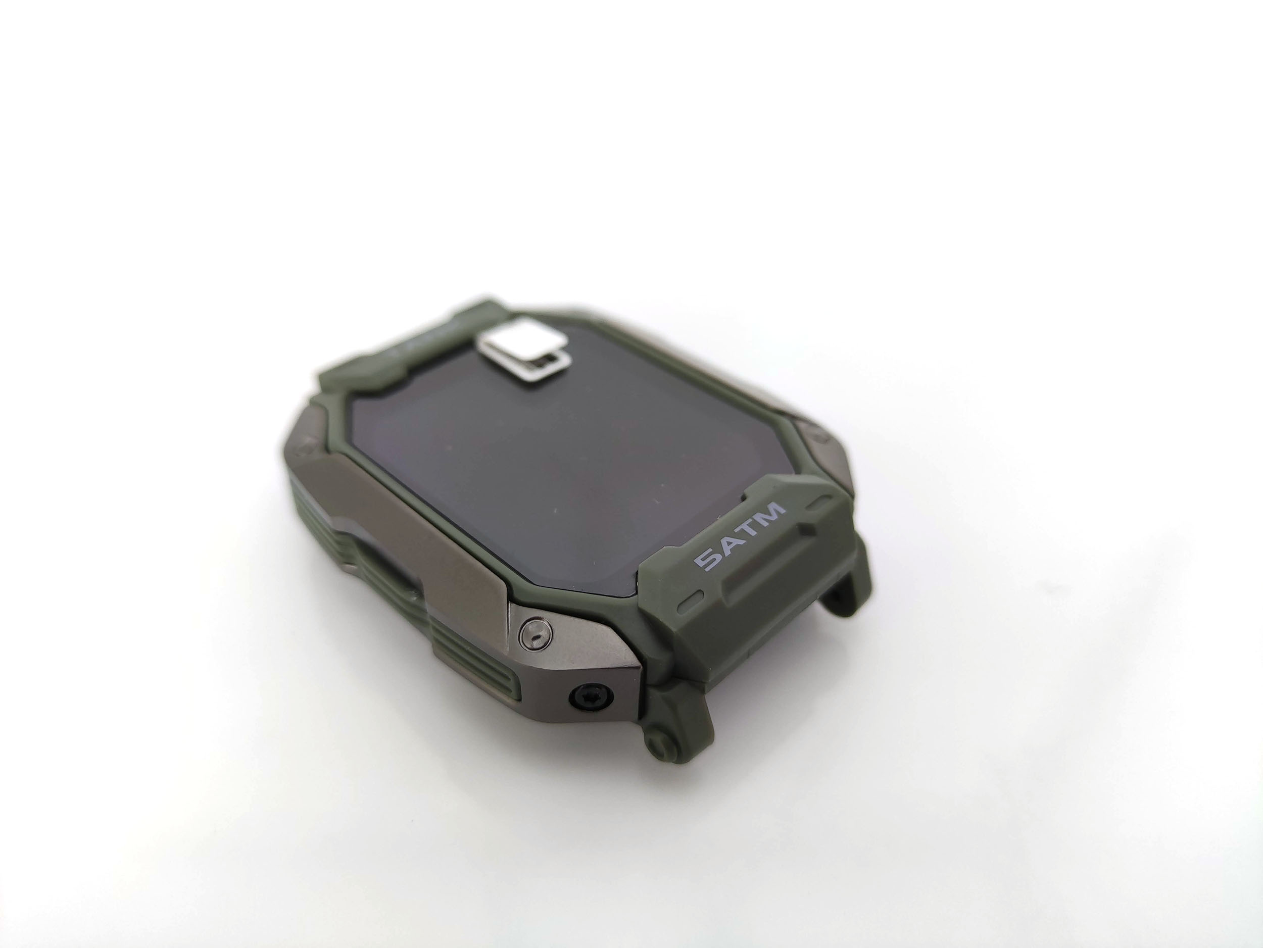 La montre est également résistante à l'eau, elle peut supporter une pression de 5 ATM et a une certification IP69K. La montre est également conçue pour résister aux chocs, elle peut en théorie survivre au passage d'une voiture de 2 tonnes.