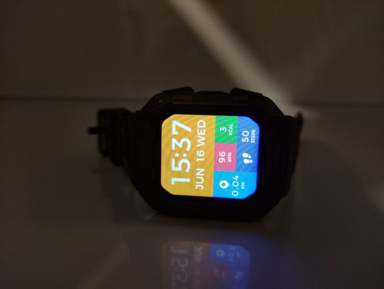 La Kospet Tank M1 est équipée d'un écran de 1.72 pouces avec une résolution de 280x320. L'écran est assez grand, la lisibilité est impeccable, on aperçoit les pixels en regardant de très près mais l'écran est parfaitement lisible. La luminosité de l'écran est assez forte lorsqu'elle est poussée au maximum, vous pouvez donc lire le cadran en étant exposé à la lumière du jour, vous pouvez aussi l'utiliser pour éclairer une zone proche de vous lorsque vous êtes dans l'obscurité.