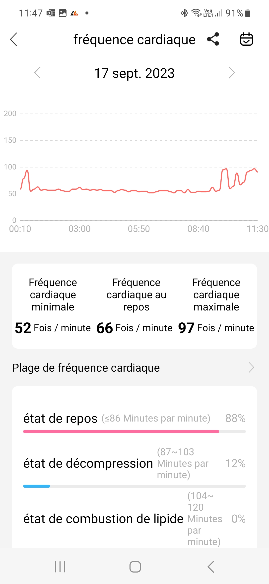 Sur la droite vous retrouverez plusieurs widgets qui regroupent certaines données sous forme graphique. Vous avez ainsi le suivi du sommeil avec les périodes de sommeil et d'éveil, le suivi du rythme cardiaque, le suivi du taux d'oxygène dans le sang, ...