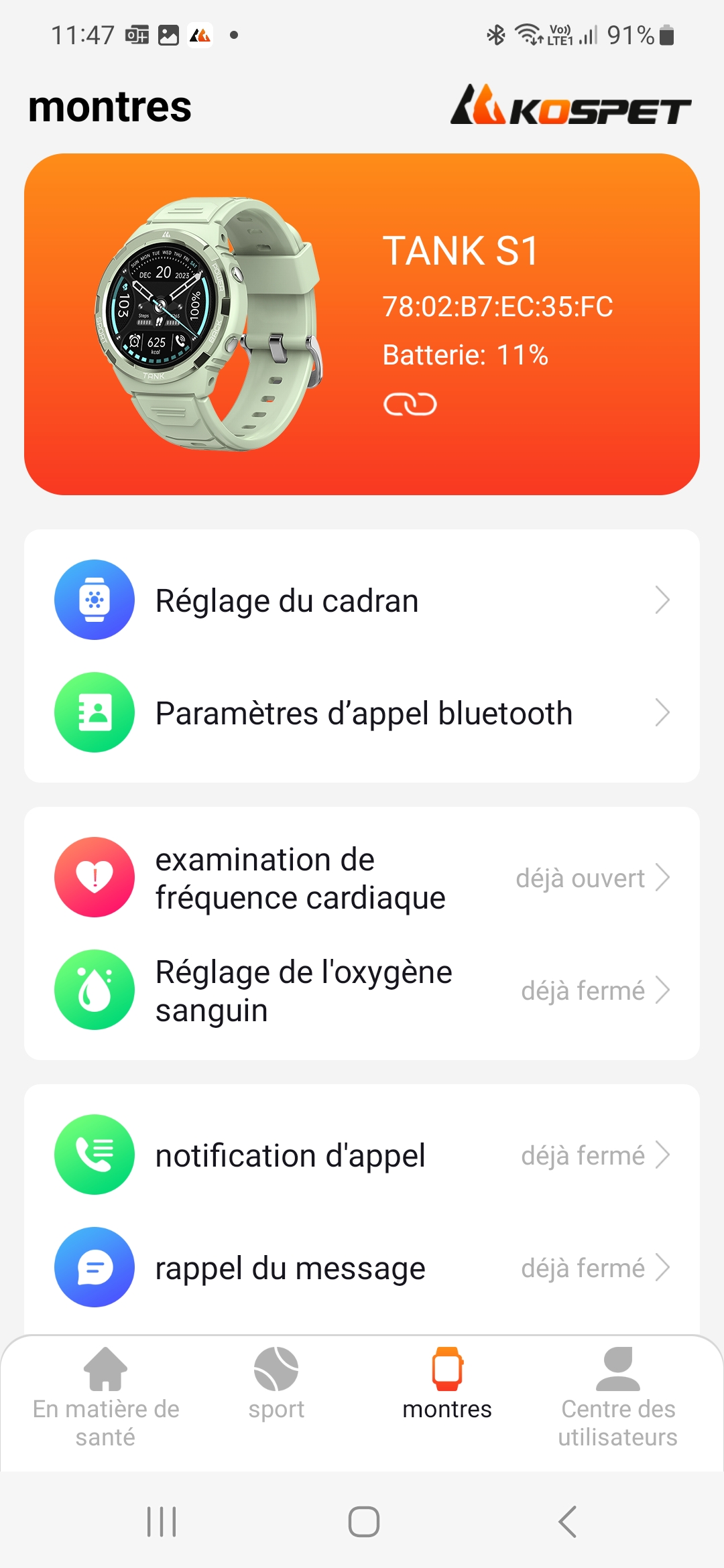 J'avais déjà eu l'occasion de tester l'application Kospet Fit avec un modèle précédent et je n'ai pas constaté de différence.