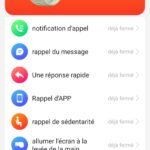 Sur la gauche vous retrouverez une liste avec toutes les fonctionnalités de la montre, il s'agit d'une simple liste où il suffit de cliquer sur le titre pour accéder à la fonctionnalité.