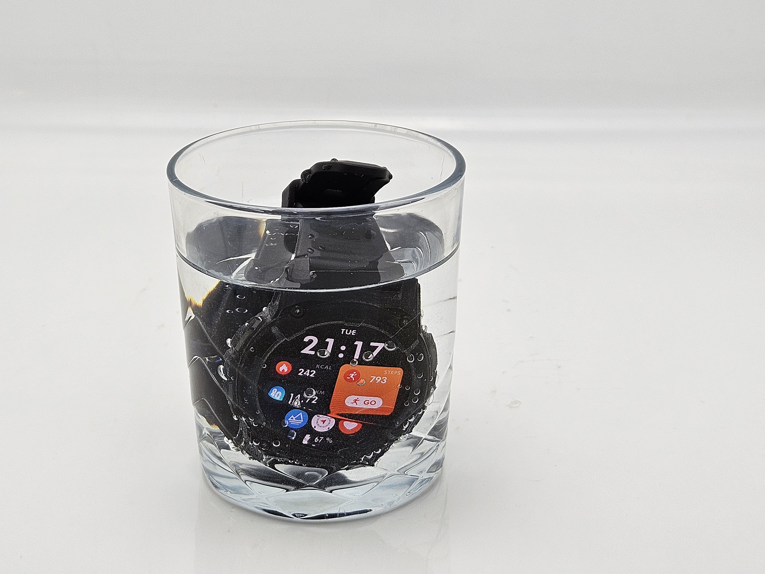 Kospet met en avant la robustesse de ses montres comme un argument de vente, est-ce que ces montres sont vraiment robustes? Oui, vous pouvez jeter la montre à 2 mètres sur un sol dur, elle ne se cassera pas. J'ai fait une autre expérience pour démontrer la robustesse de la montre. J'ai d'abord plongé la montre dans un verre d'eau, ce n'est pas extraordinaire mais j'avais pris soin de laisser l'écran allumé. L'eau n'a eu aucune influence sur la montre. Pour augmenter le niveau de difficulté, j'ai mis le verre d'eau avec la montre dans mon réfrigérateur à -17°C et puis j'ai oublié que je l'avais mise dans le refrigérateur...3 jours plus tard, je m'en suis souvenu et j'ai retiré la montre. Elle était complètement figée dans la glace, l'écran était éteint, je pensais donc qu'elle n'avait pas supporté le froid...et bien si! J'ai laissé la glace fondre, j'ai ensuite pris la montre, je l'ai essuyée et placé sur sa station de recharge...elle a redémarré tout de suite, la batterie était vide parce que j'avais laissé l'écran allumé tout le temps et la batterie n'était pleinement chargée.