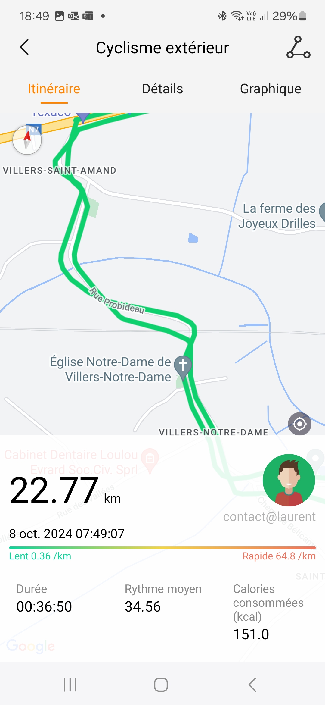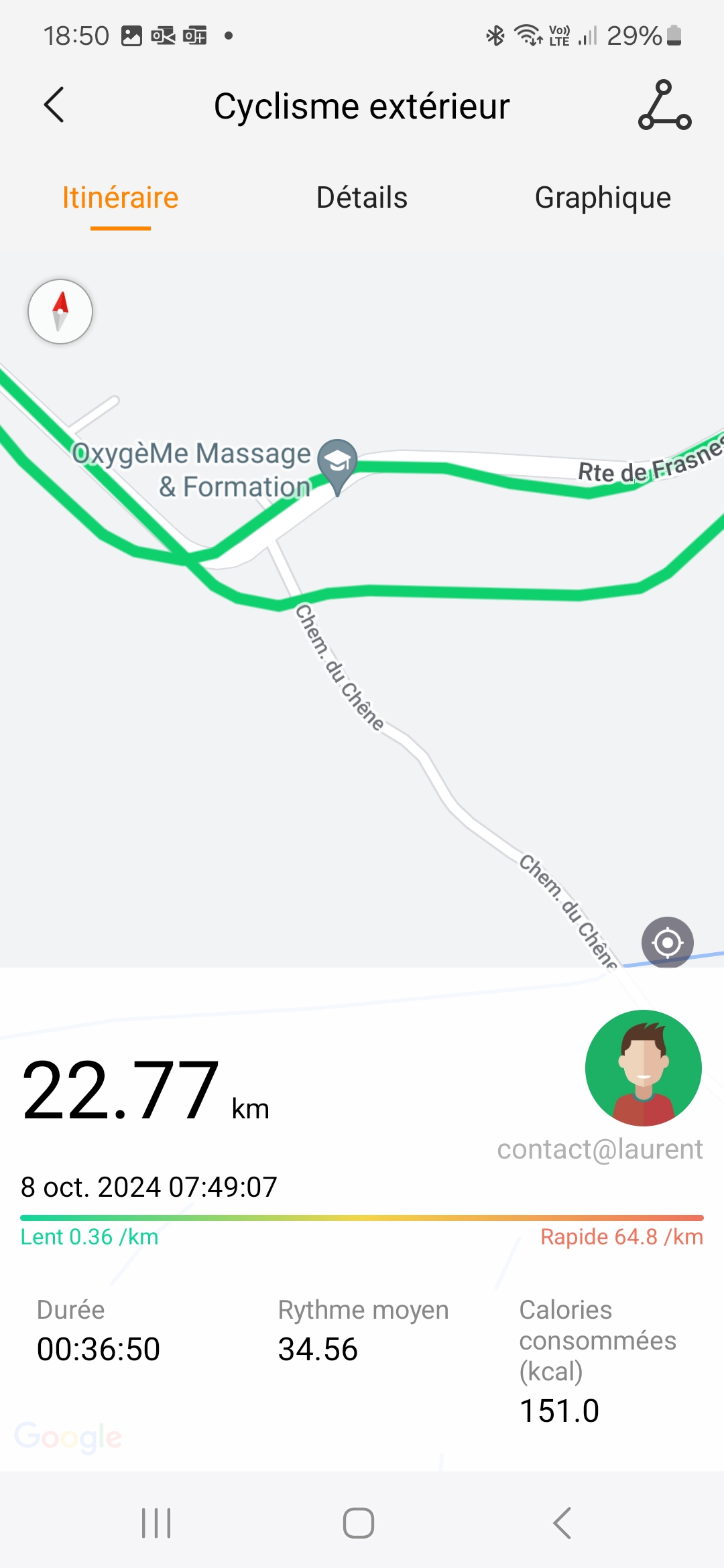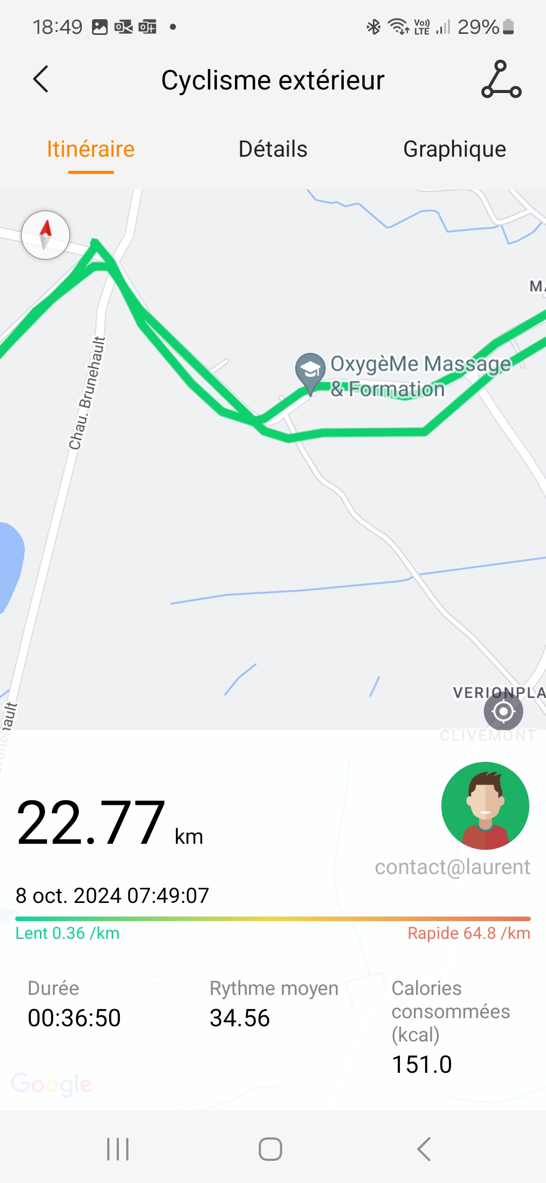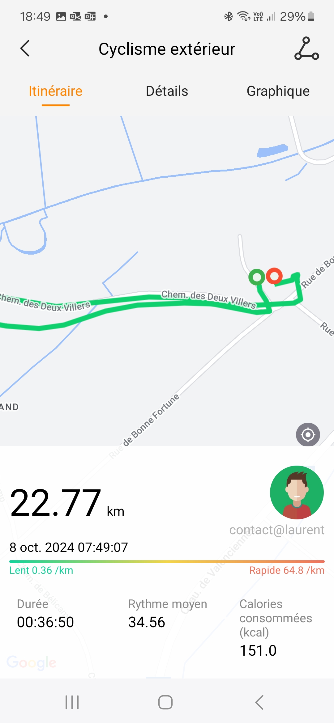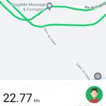 J'ai testé la précision du GPS sur une distance de 22 km. La première connexion avec le réseau GPS a pris moins d'une minute ce qui est plutôt bon pour une première utilisation. La précision par contre a été assez aléatoire sur la première minute suivante où j'ai constaté des écarts assez importants avec la réalité. Par la suite ces écarts se sont réduits avec parfois quelques déviations comme sur les captures d'écran suivante. J'ai testé la Kospet Tank S2 en même temps que cette montre (sur mon autre bras) et j'ai obtenu un résultat différent. La première connexion a pris plus de temps mais par la suite les écarts étaient moins importants.