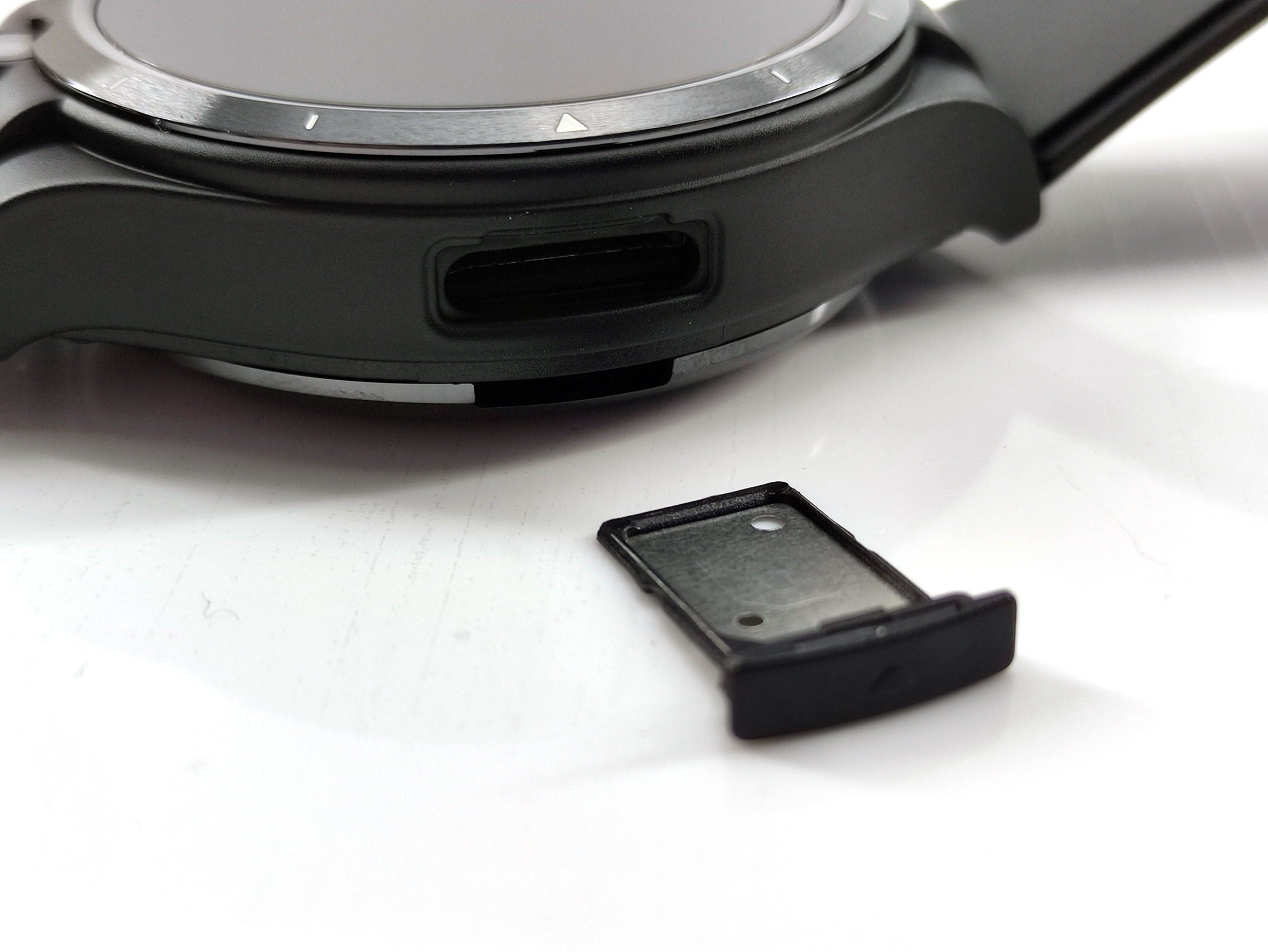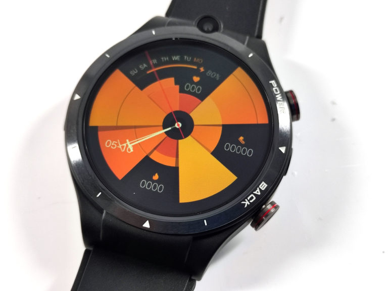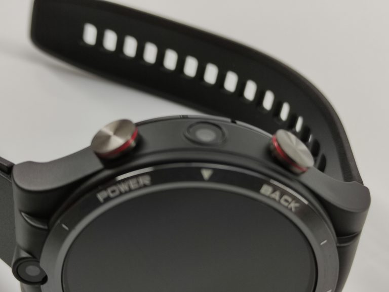 La caméra frontale se trouve en haut du cadran, la caméra secondaire se trouve entre les deux boutons sur la droite. Le tiroir sim se trouve sur la gauche et il peut être ouvert à la main, pas besoin d'une aiguille comme sur la Kospet.
