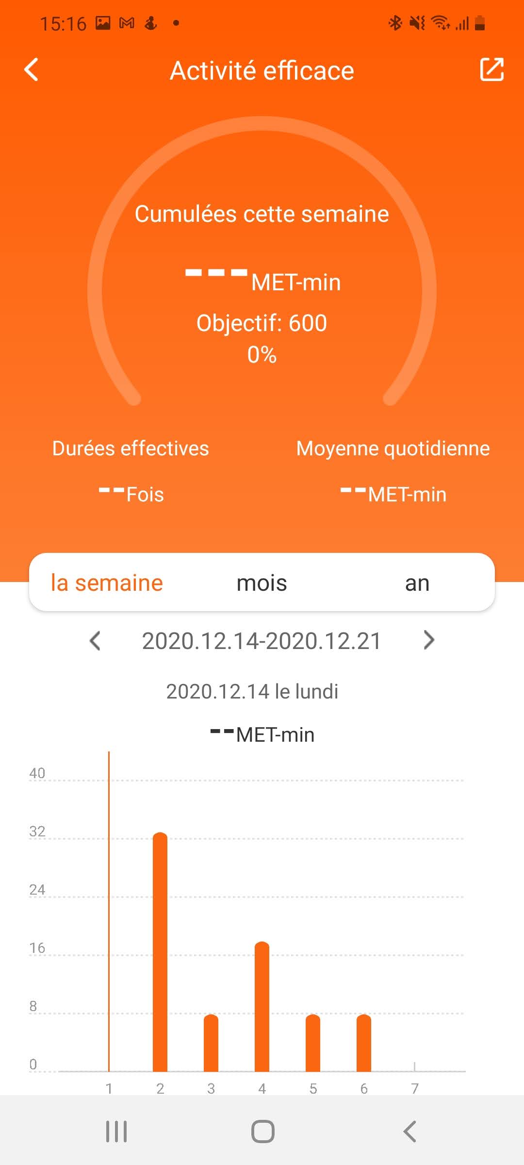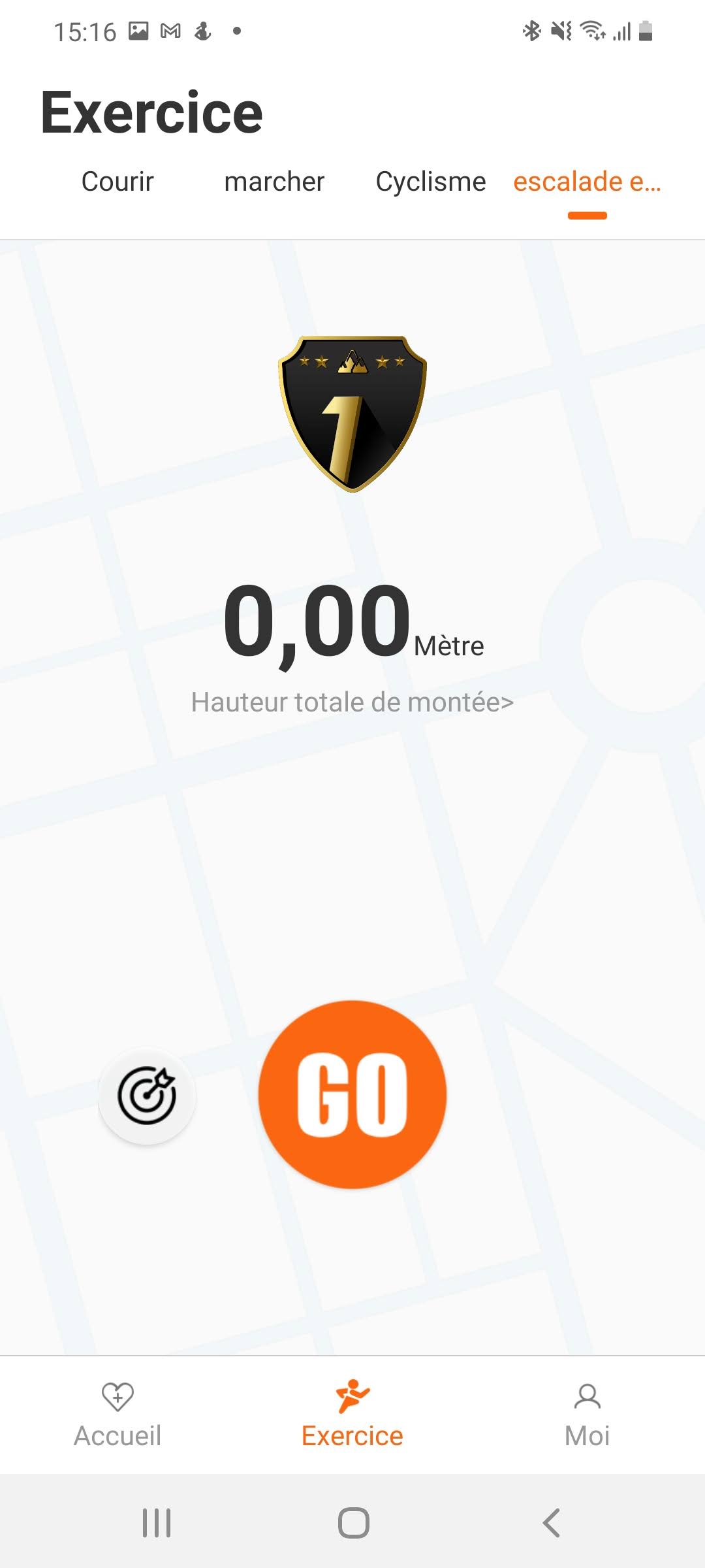 L'écran d'activité permet de déclencher des activités à partir du téléphone et en se servant des capteurs de la montre pour par exemple ajouter les pulsations cardiaques. J'ai remarqué que les activités démarrées à partir de la montre ne sont pas reprises dans les activités sur l'application, c'est sans doute un bug.