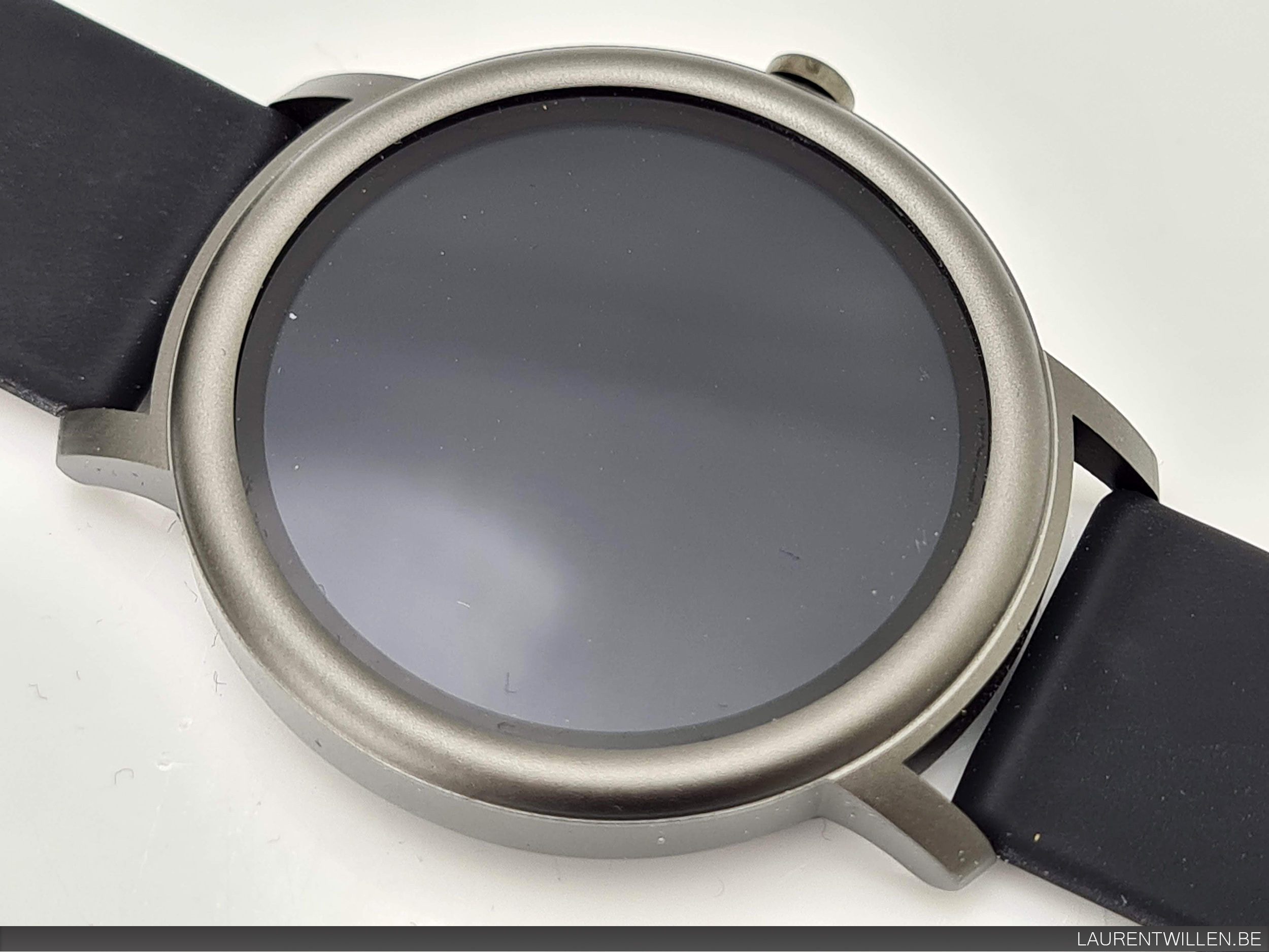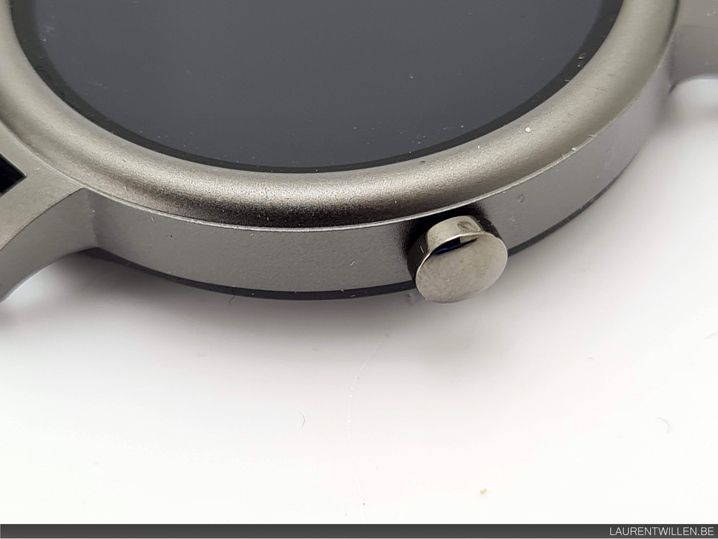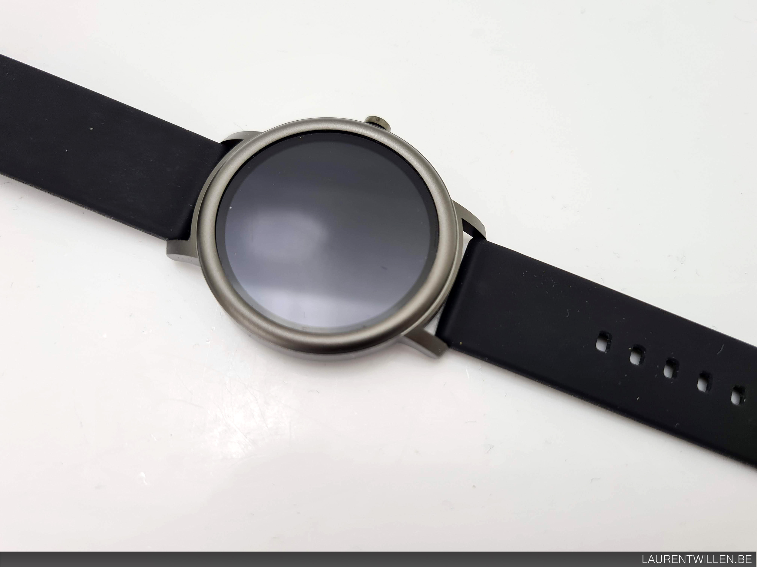 Le cadran de la montre mesure 42mm pour une épaisseur de 9.2mm, c'est une taille assez standard pour les montres à écran circulaire. C'est une taille suffisante pour afficher toutes les informations nécessaires sur l'écran. Un bouton sur la droite permet d'allumer la montre, il est possible de tourner ce bouton mais il n'a aucun effet sur la montre.